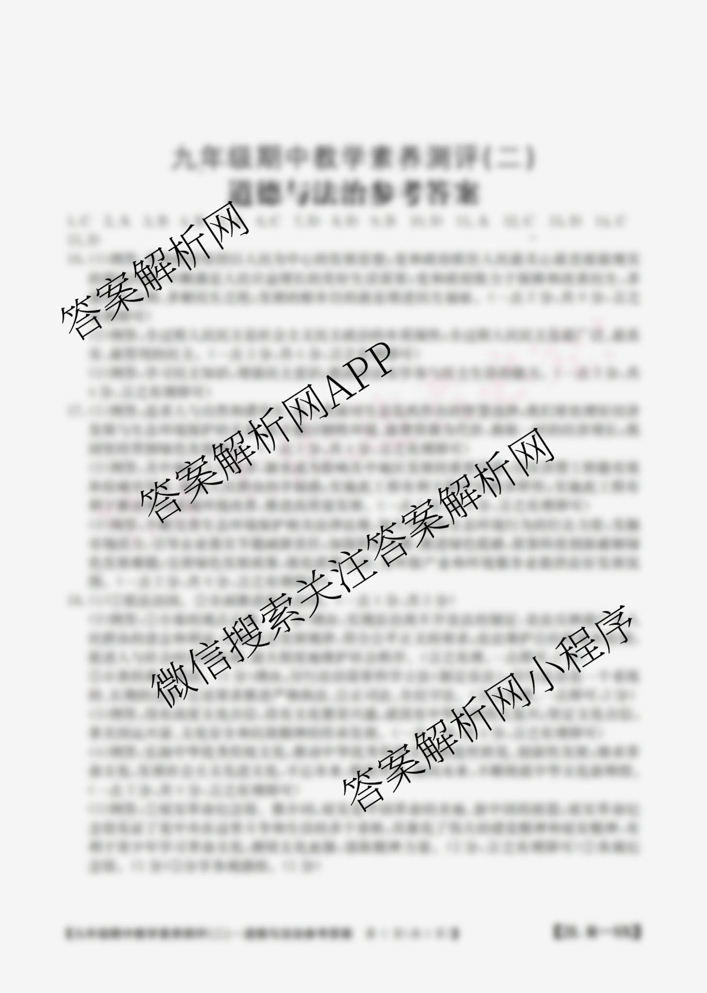 [九年级]陕西省2025届期中教学素养测评(二)[2L-SX]道德与法治(R)答案