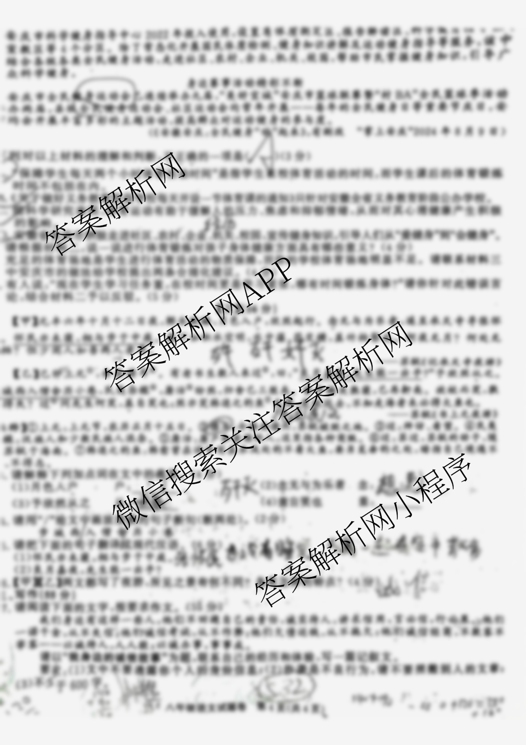- 2024-2025(八年级)安徽省学年上学期期中教学质量调研(无标题)语文(人教版)答案