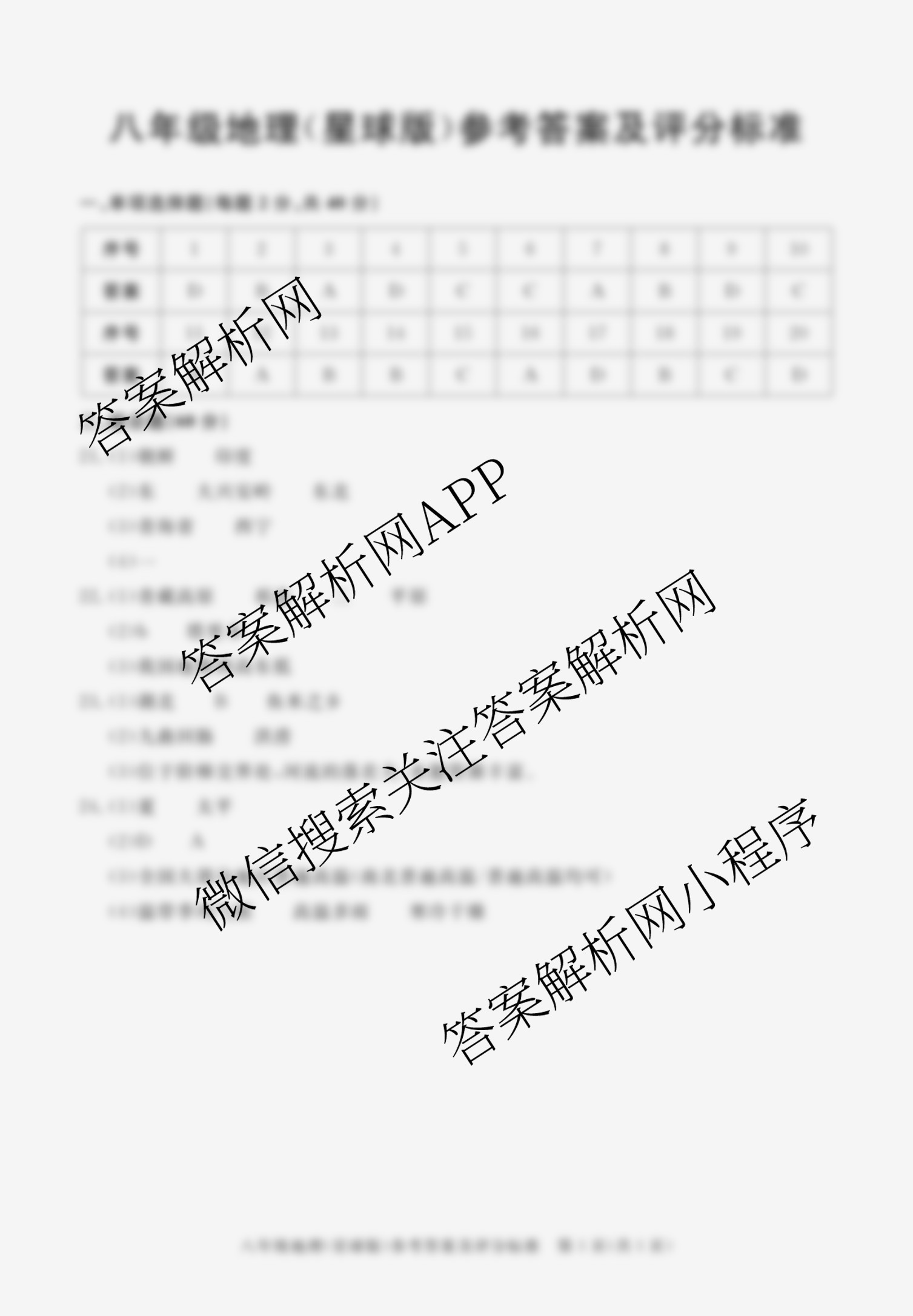 - (八年级)安徽省2024-2025学年上学期期中教学质量调研(无标题)地理(星球版)答案