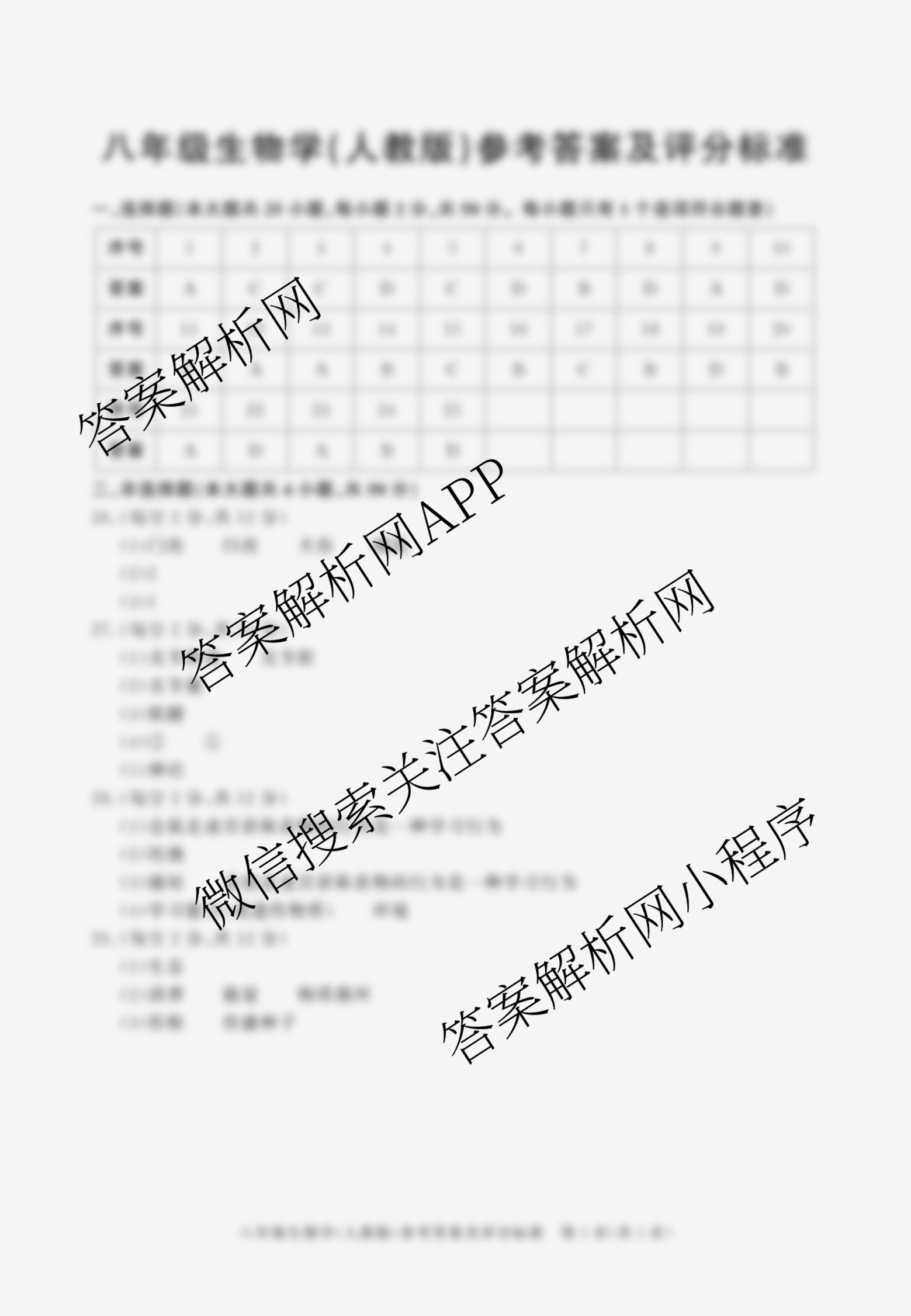 - 2024-2025(八年级)安徽省学年上学期期中教学质量调研(无标题)生物(北师大版)答案