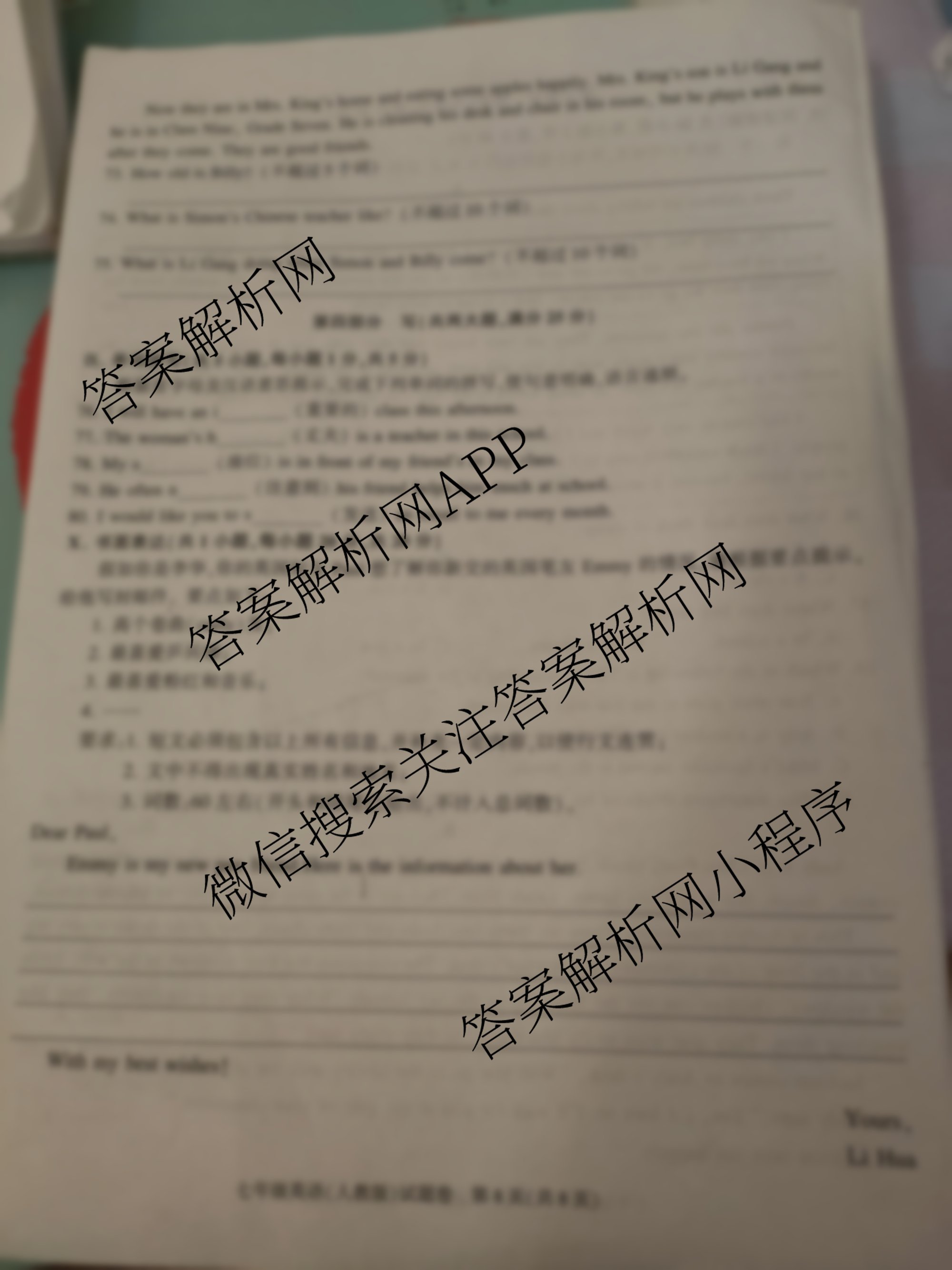 安徽省2024-2025学年七年级上学期期中教学质量调研(无标题)英语(人教版)试题,目前学英语报答案已经汇总了安徽省2024-2025学年七年级上学期期中教学质量调研(无标题)英语(人教版)试题的各科答案和试卷,获取更多安徽省教学质量调研答案解析,请在关注本站。