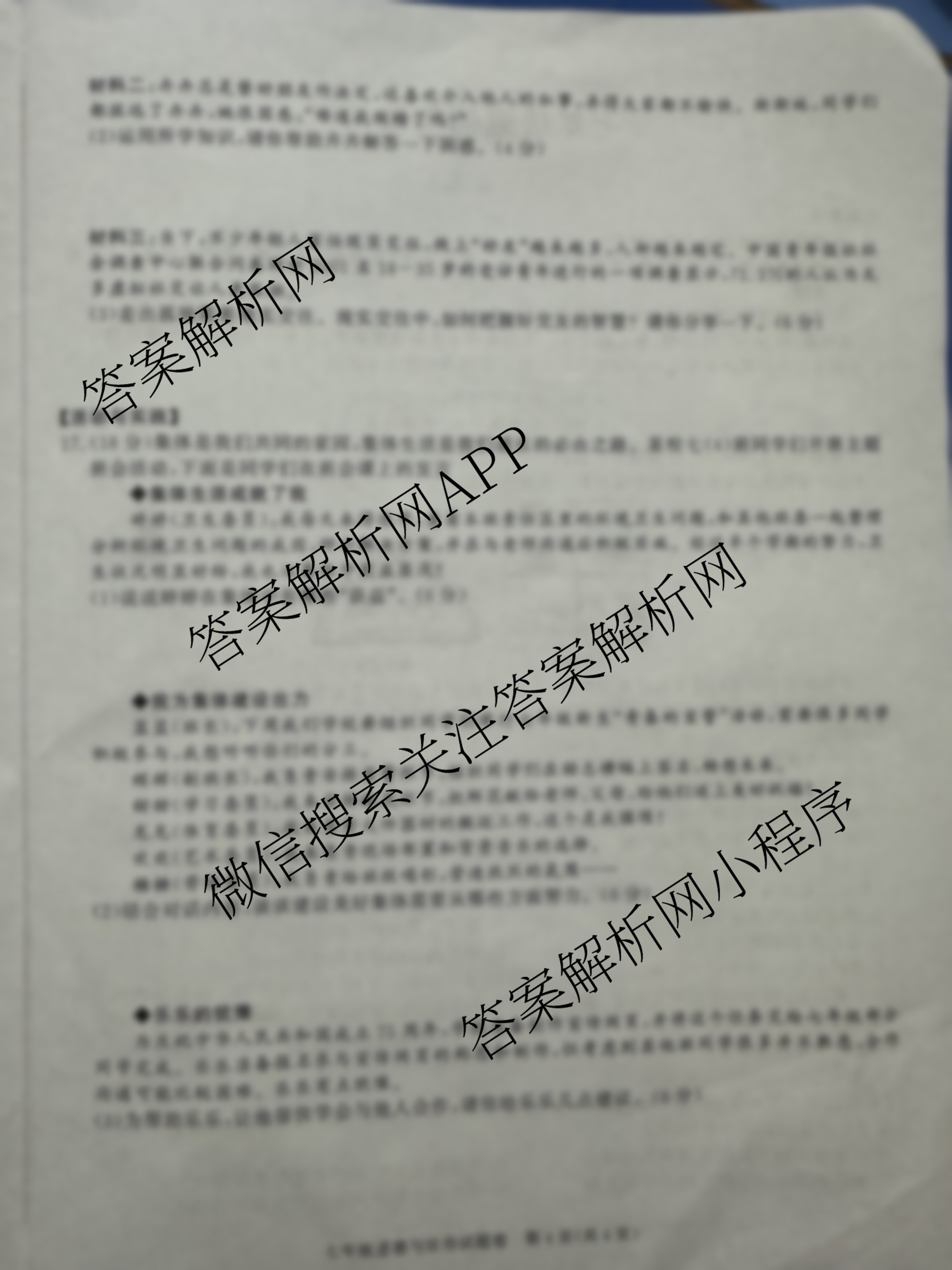 安徽省2024-2025学年七年级上学期期中教学质量调研(无标题)道德与法治试题,目前学英语报答案已经汇总了安徽省2024-2025学年七年级上学期期中教学质量调研(无标题)道德与法治试题的各科答案和试卷,获取更多安徽省教学质量调研答案解析,请在关注本站。