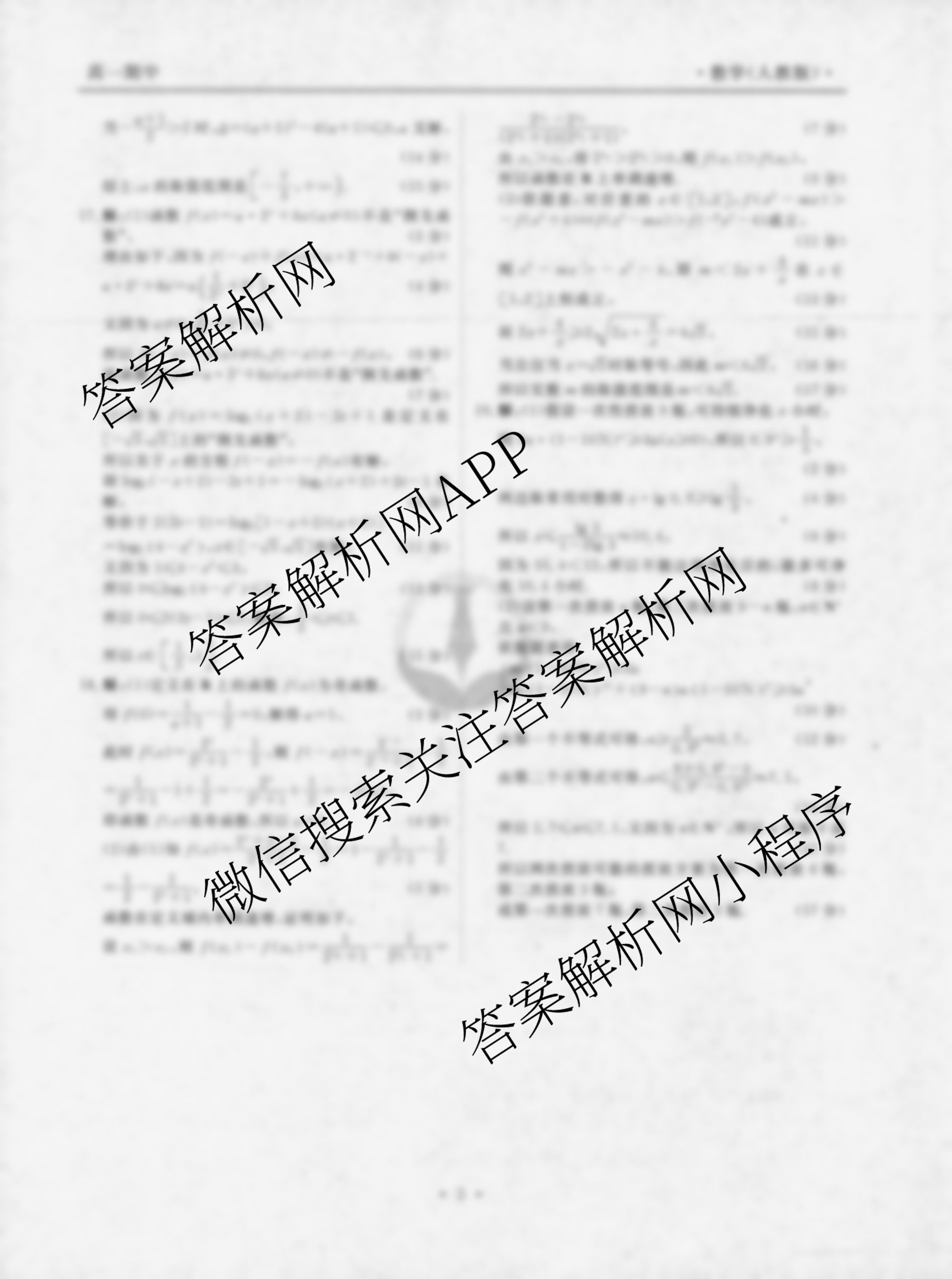 - (高一)[衡水金卷先享题]月考卷 2024~2025学年度上学期年级期中考试数学(人教版)答案
