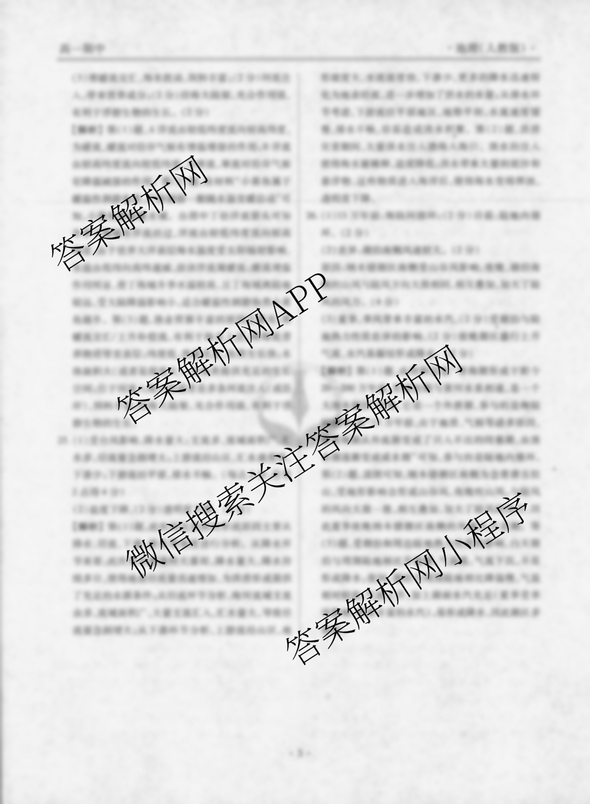 - 2024-2025[衡水金卷先享题]月考卷 学年度上学期[高一]年级期中考试地理(人教版)答案
