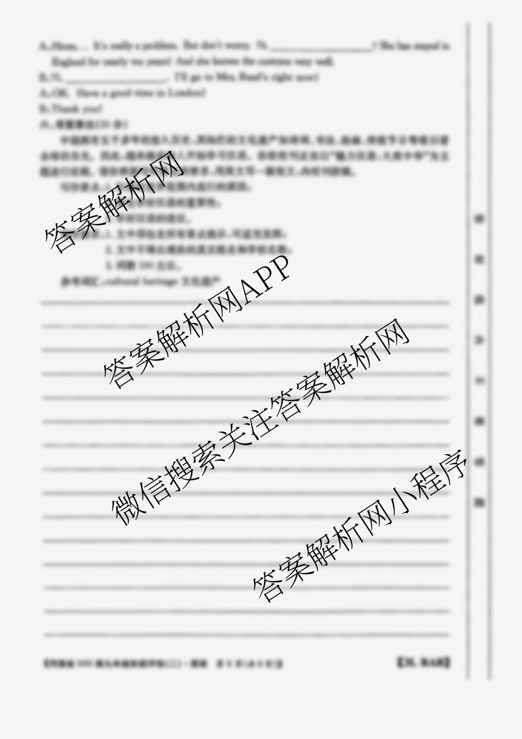 河南省2025届九年级阶段评估(二)[3L]英语(RAB)试题,目前学英语报答案已经汇总了河南省2025届九年级阶段评估(二)[3L]英语(RAB)试题的各科答案和试卷,获取更多初中阶段诊断答案解析,请在关注本站。