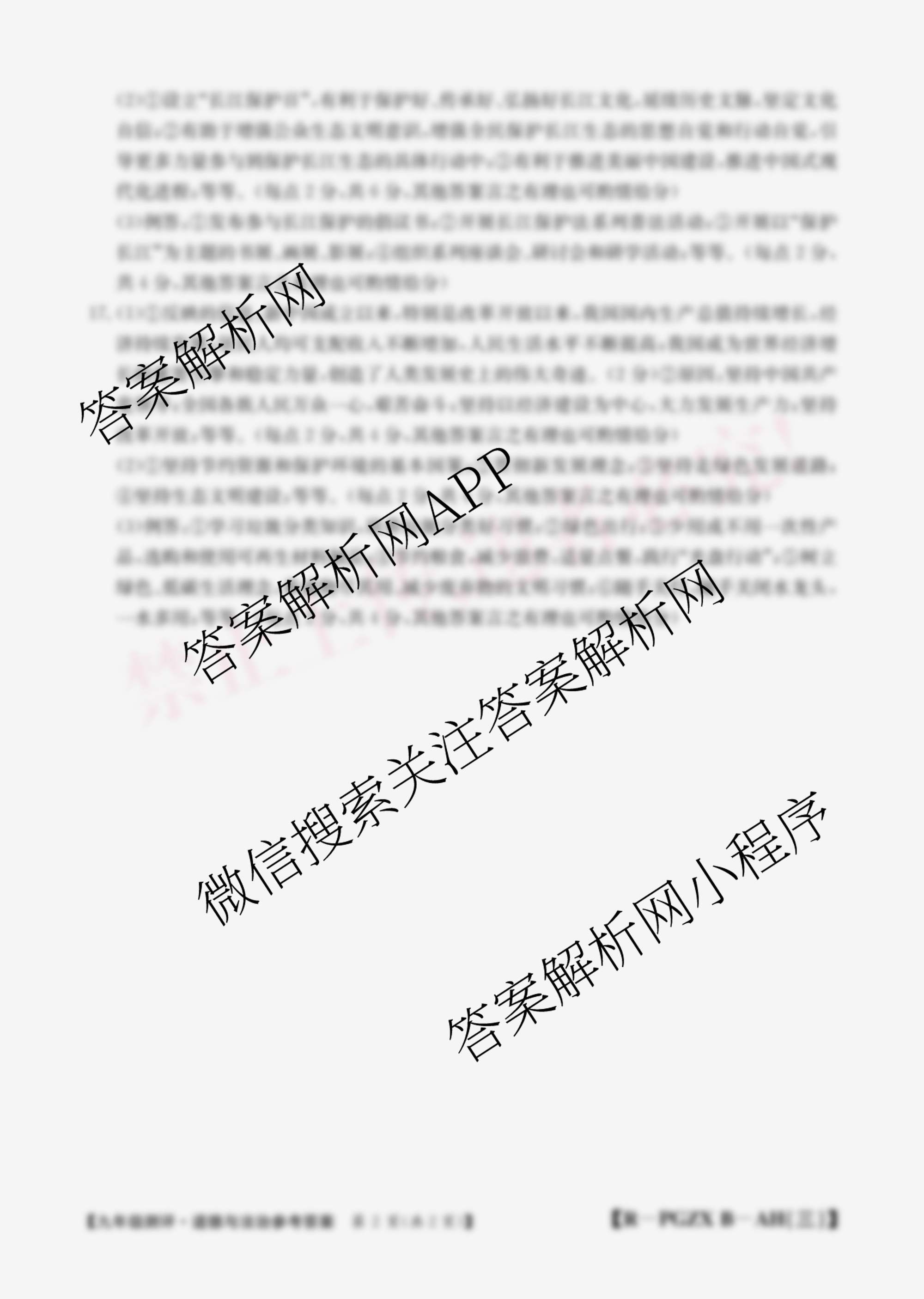 - (九年级)安徽省2024-2025测评(无标题)[PGZX B-AH(三)]道德与法治(R)答案