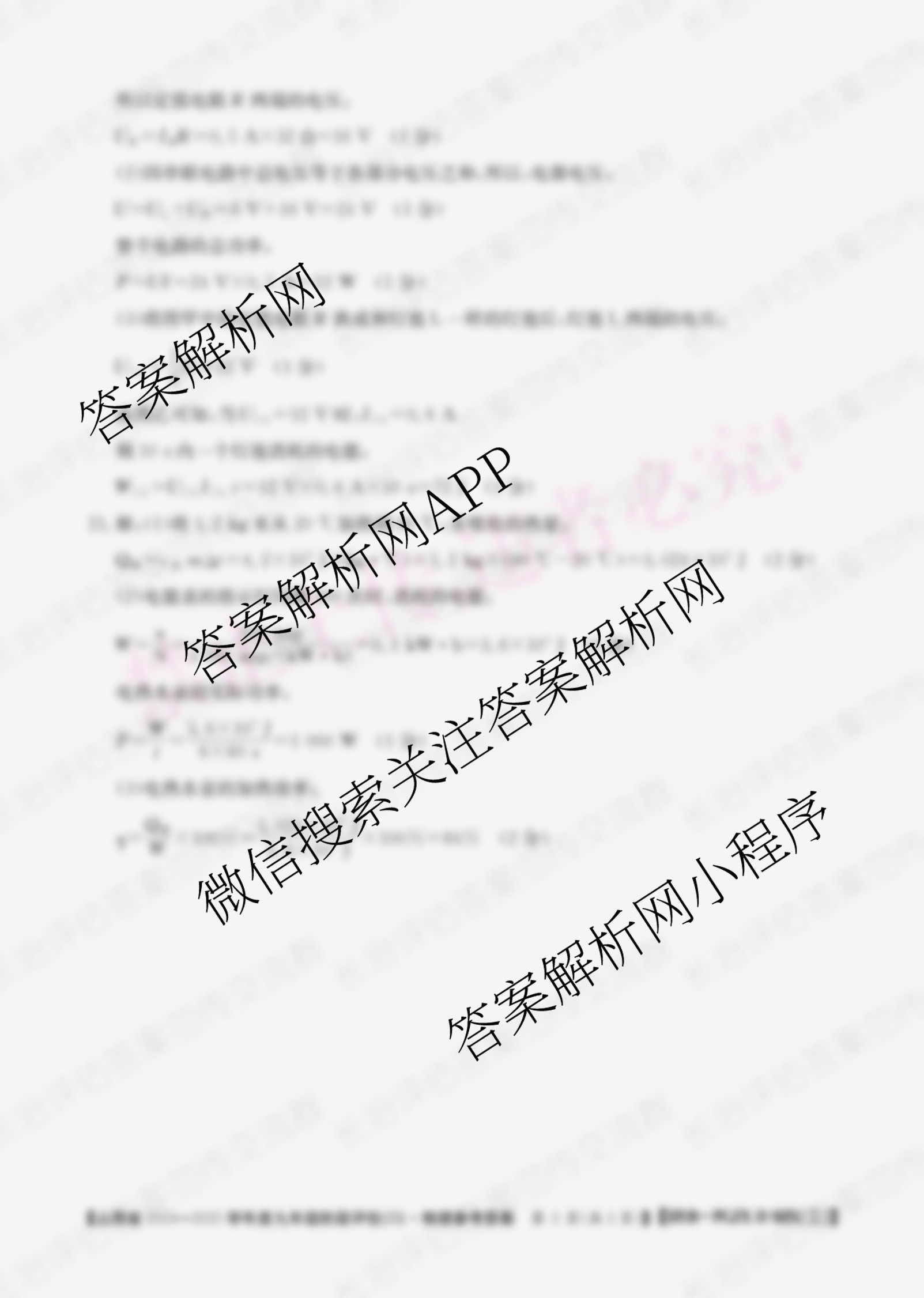 - 2024~2025山西省学年度(九年级)阶段评估(B)[PGZX D SHX(三)]物理(HYB)答案