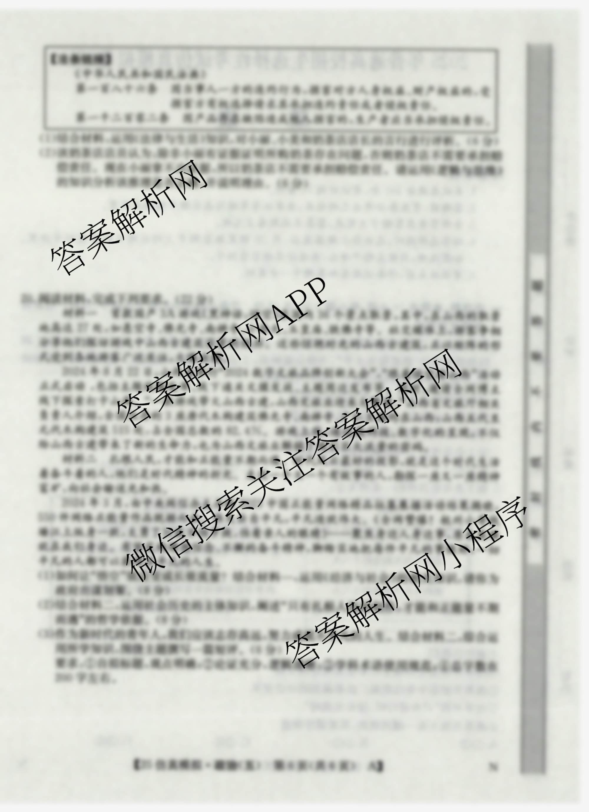 - 2025年普通高校招生选择性考试仿真模拟卷 政治(AH N)(五)5答案