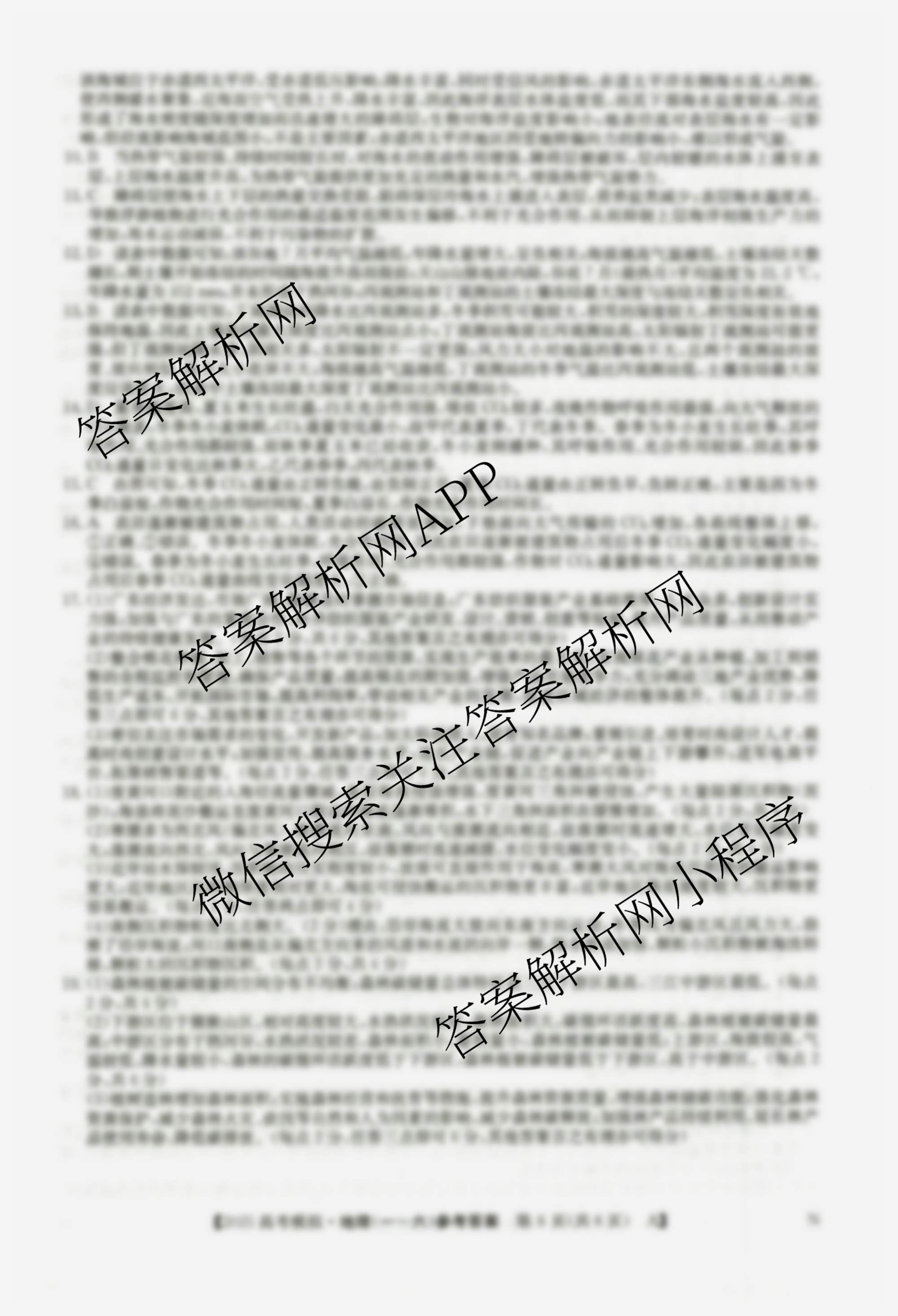- (高三)2025年普通高校招生选择性考试仿真模拟卷 地理(A N)(六)6答案