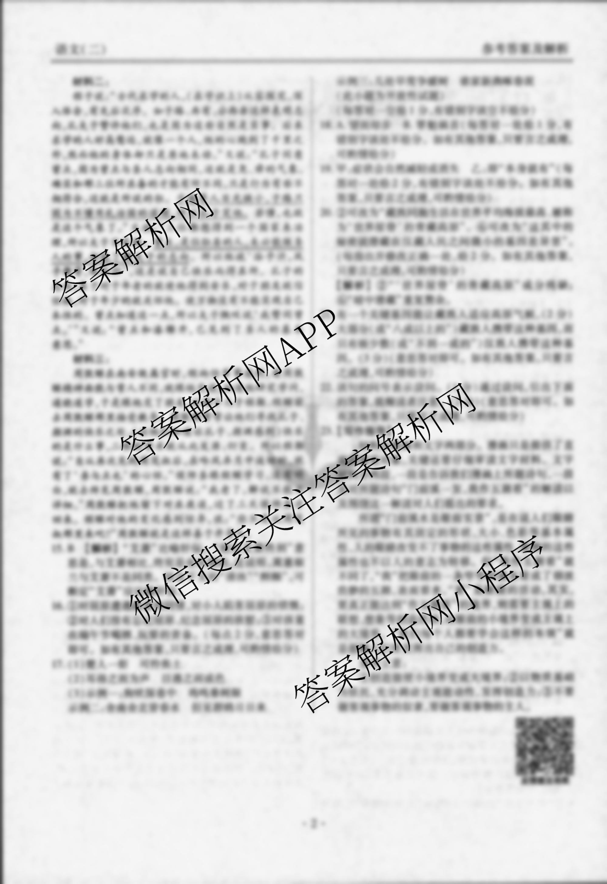 - (高三)衡水金卷先享题调研卷 2025年普通高等学校招生全国统一考试模拟试题 语文(二)2答案