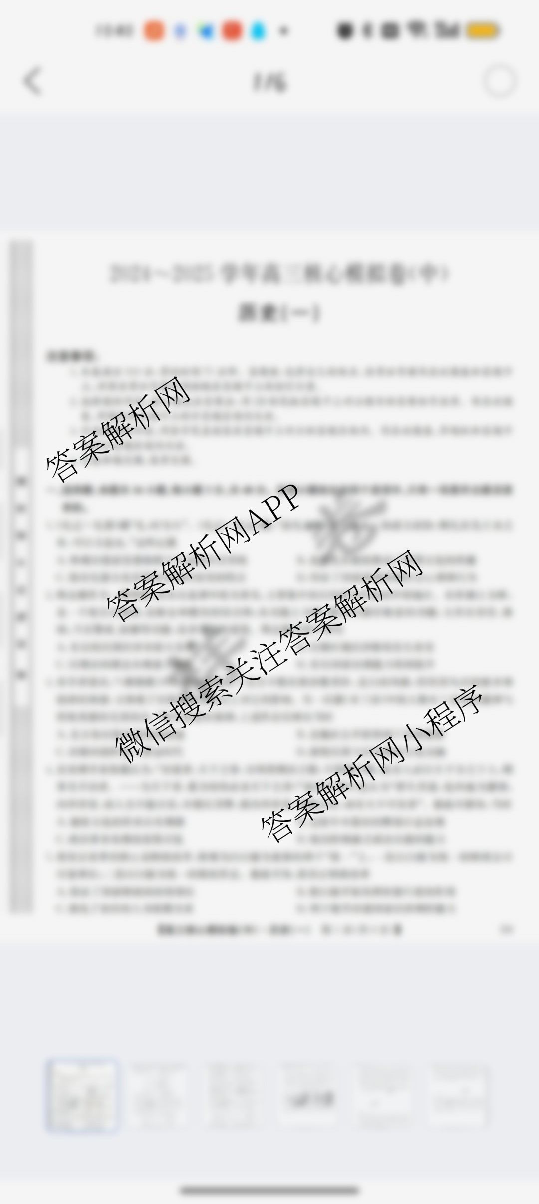 - (九师联盟)2024~2025学年[高三]核心模拟卷(中)(一)1历史(HB)答案