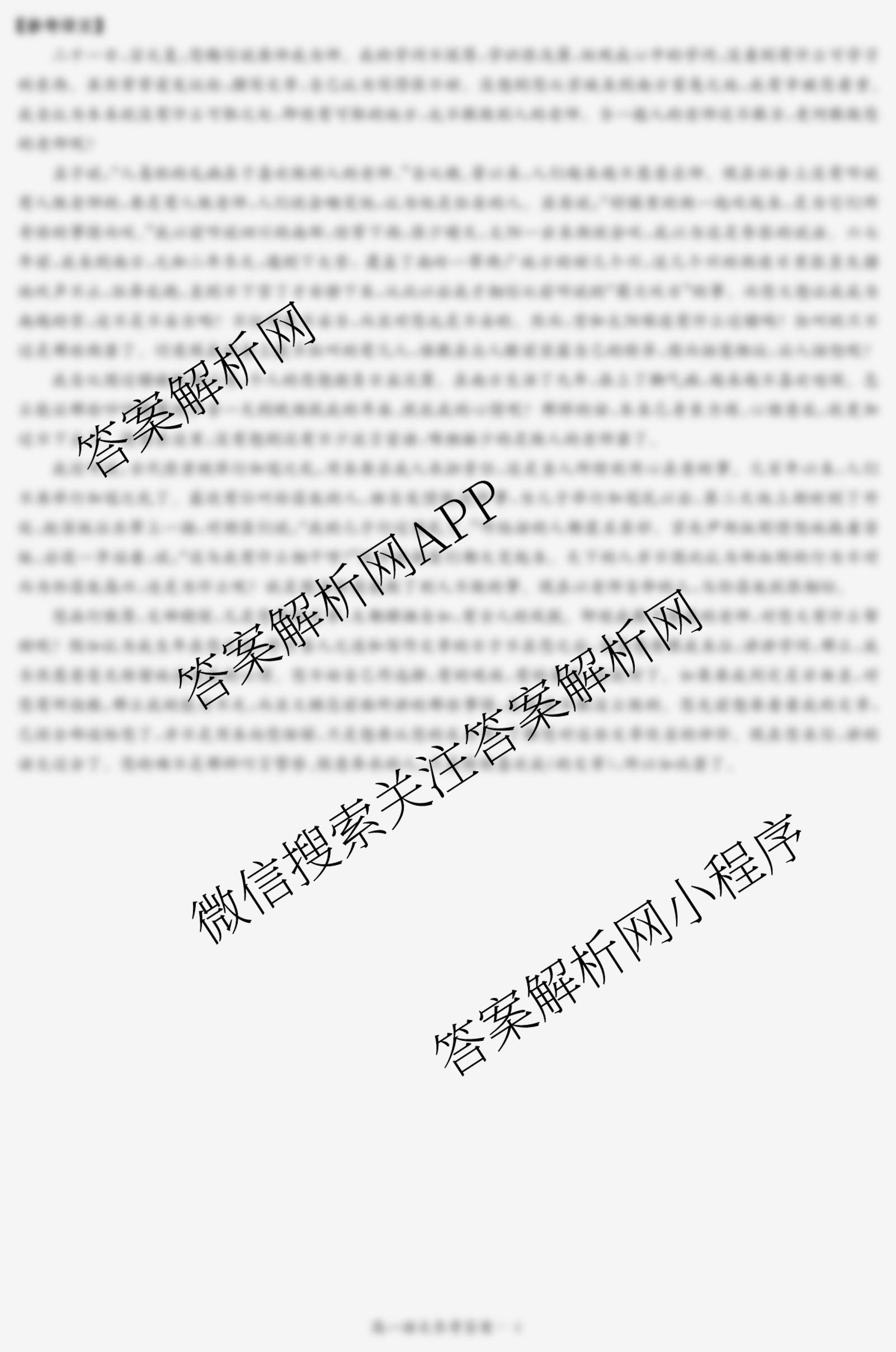 - (炎德英才大联考)2024年秋季(高一)检测卷语文答案