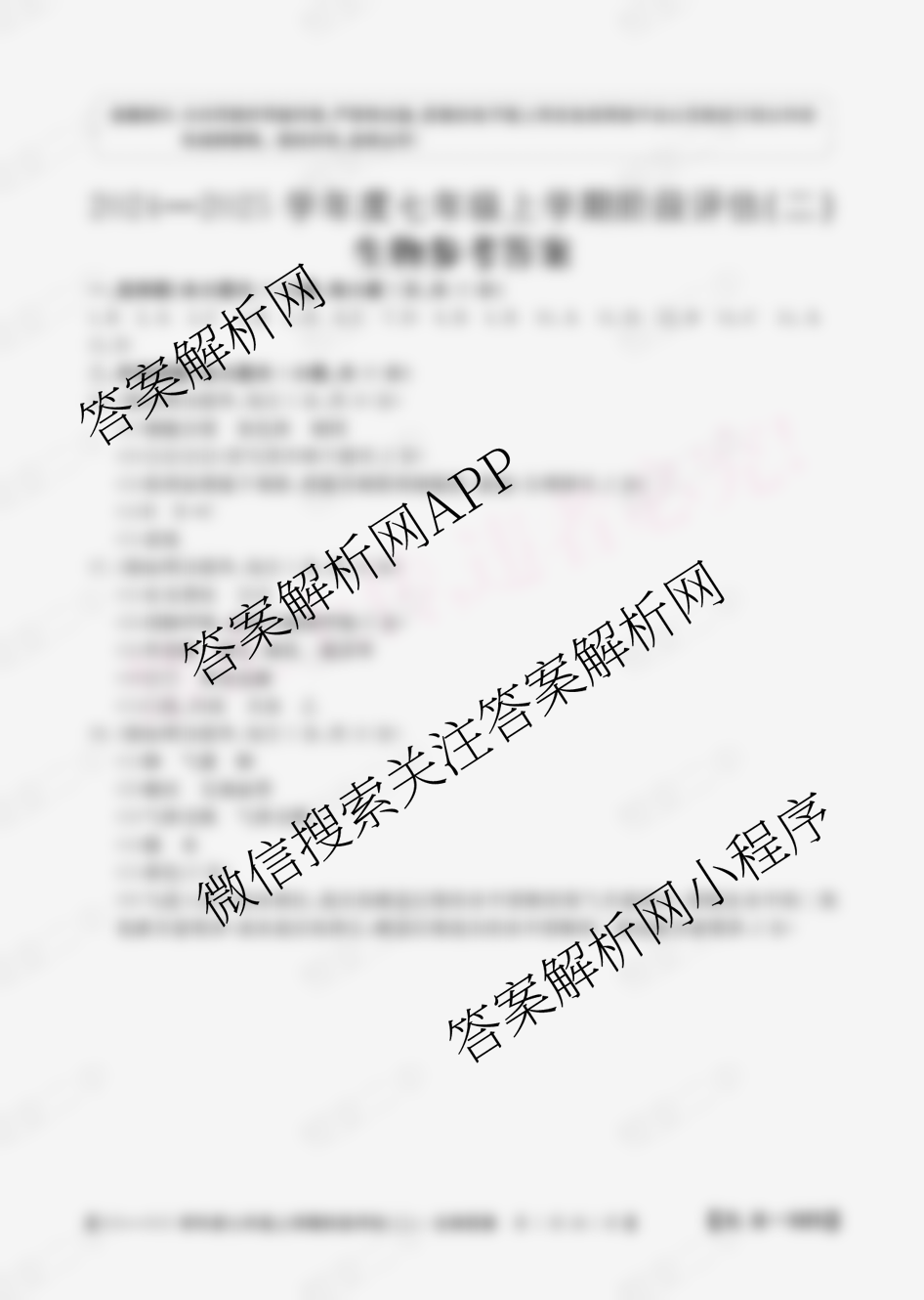 - 山西省2024~2025学年度(七年级)上学期阶段评估(二)[3L-SHX]生物(SJB)答案