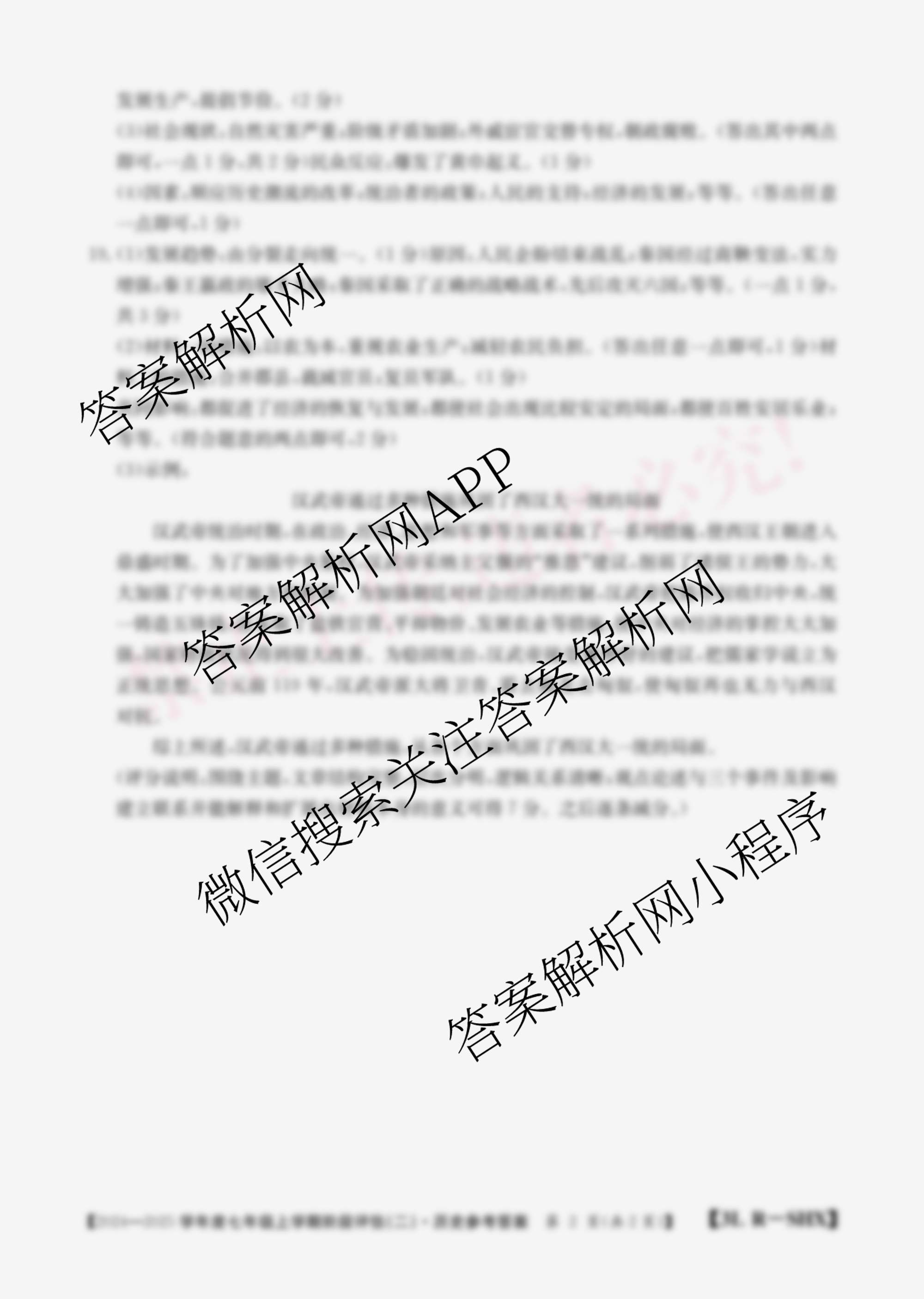 - 2024~2025山西省学年度[七年级]上学期阶段评估(二)[3L-SHX]历史(R)答案