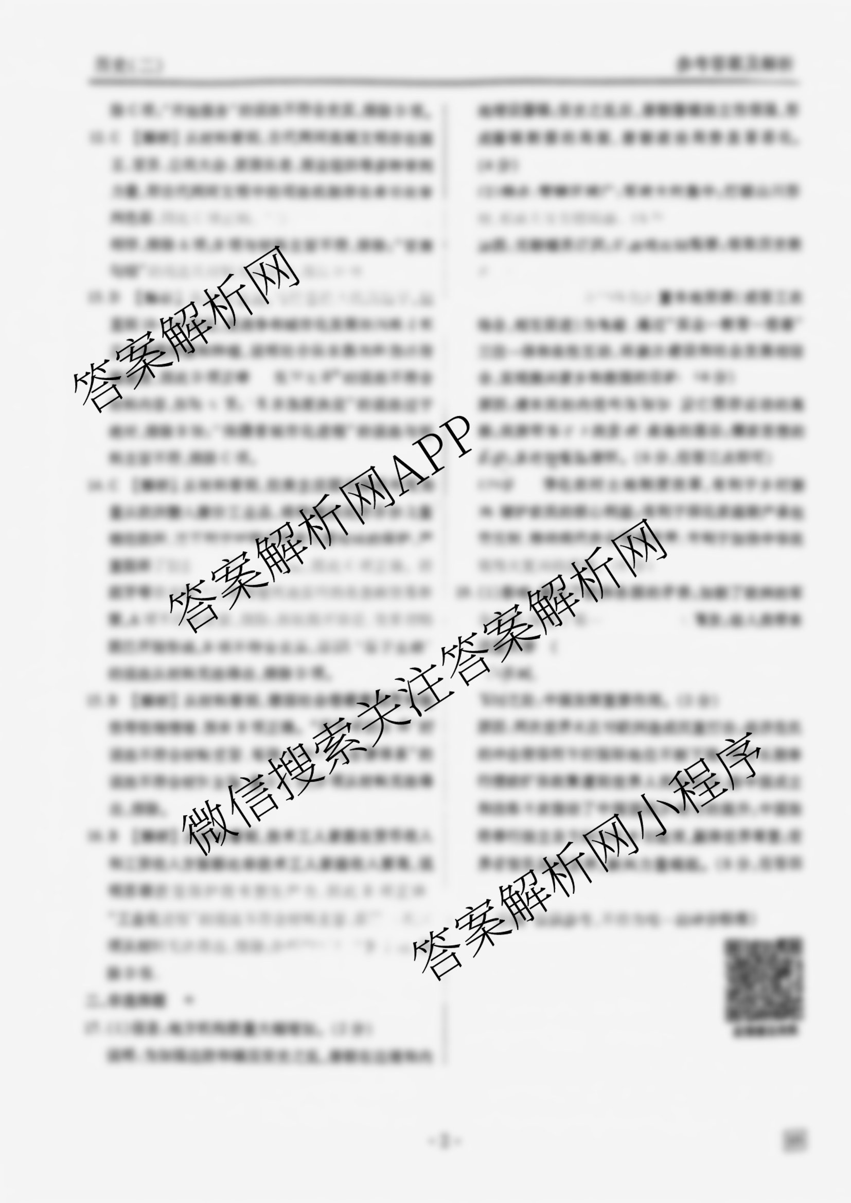 - (衡水金卷先享题)调研卷 2025年普通高中学业水平选择性考试模拟试题(二)2历史(AH)答案