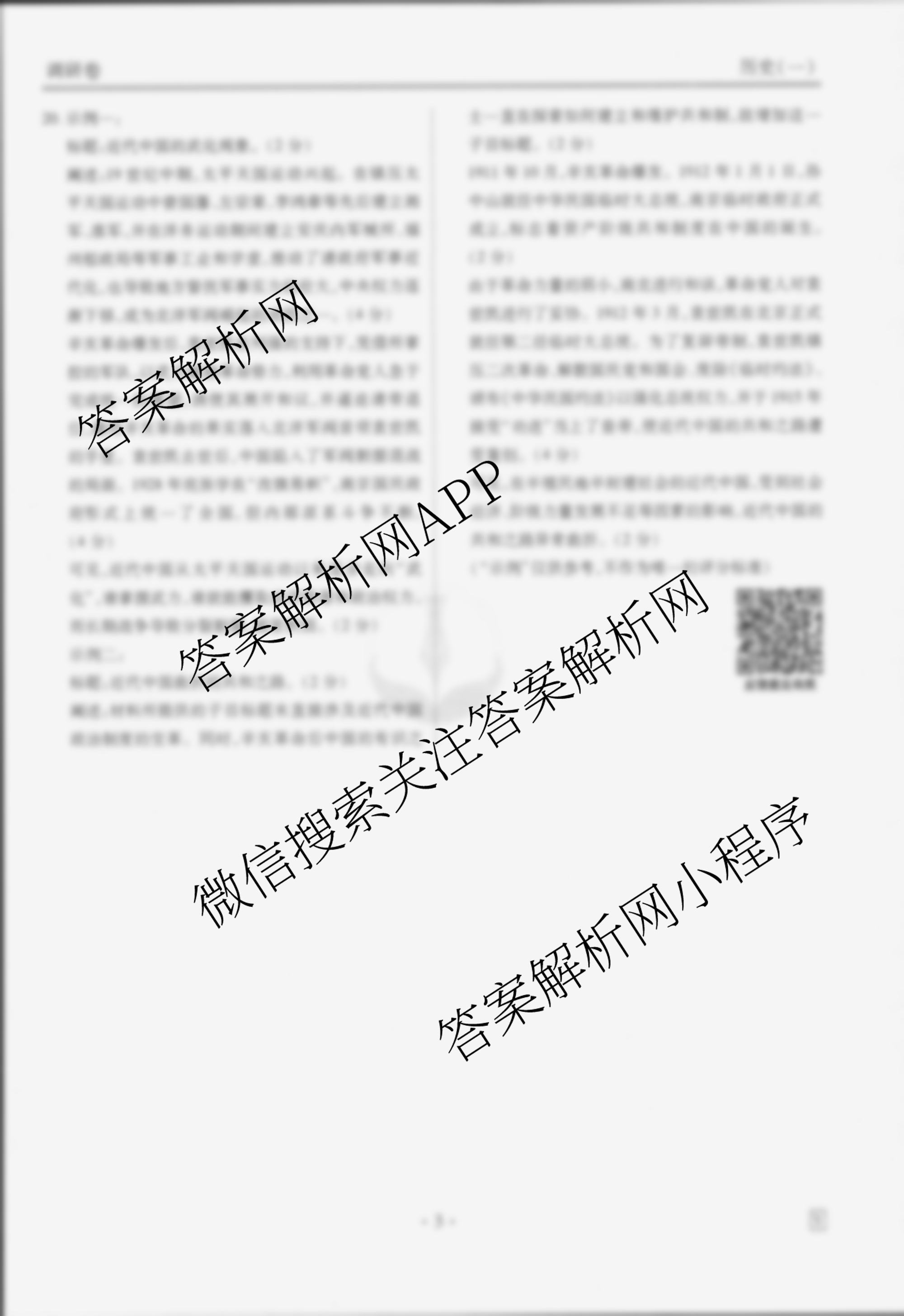 - [衡水金卷先享题]调研卷 2025年普通高中学业水平选择性考试模拟 历史(HN)(一)1答案