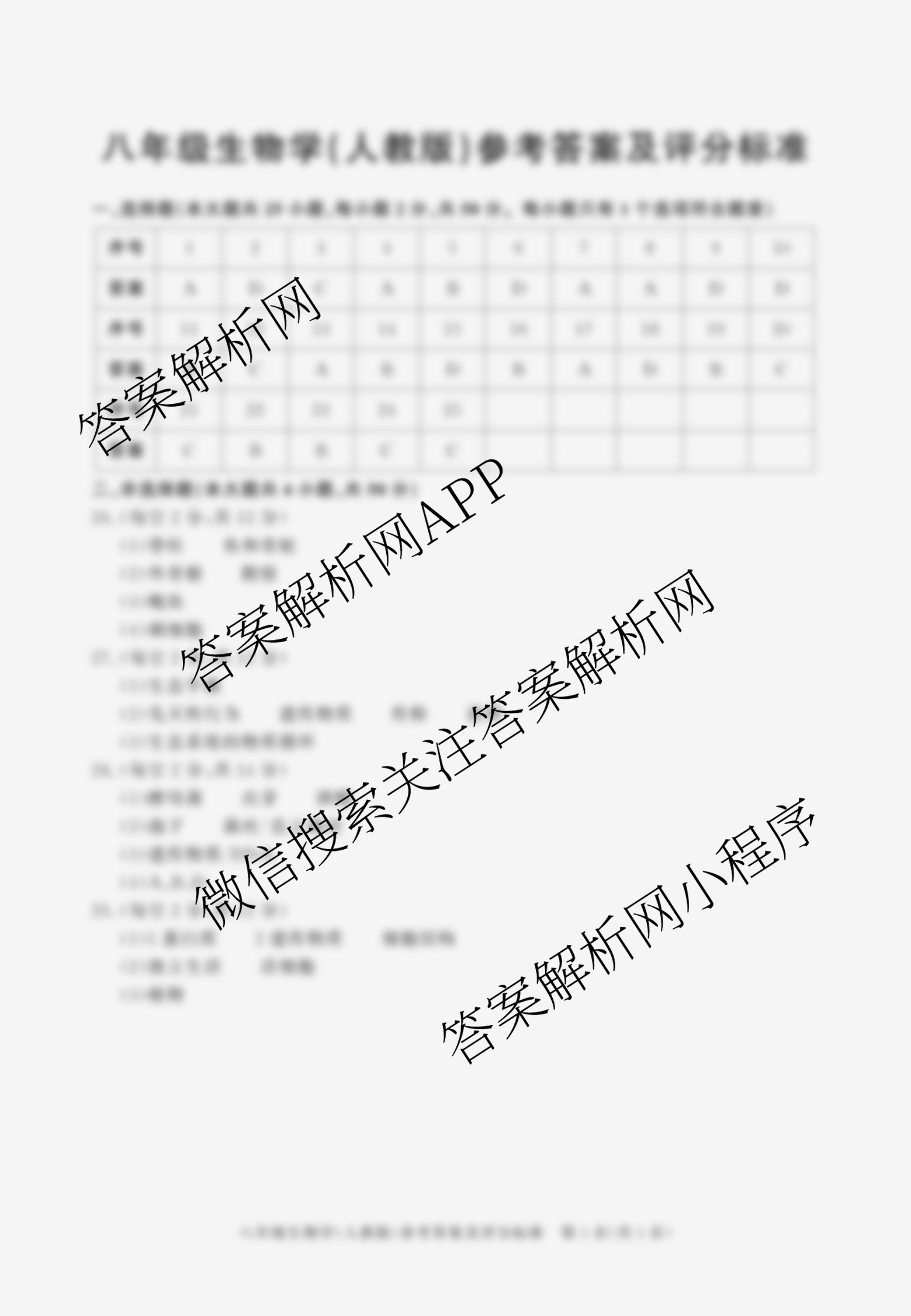 - 2024~2025安徽省学年[八年级]上学期教学质量调研三生物(北师大版)答案