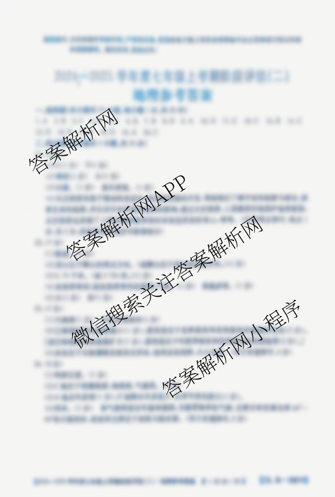 - 2024-2025[七年级]河南省学年度上学期阶段评估(二)[3L-HEN]地理(XJB)答案