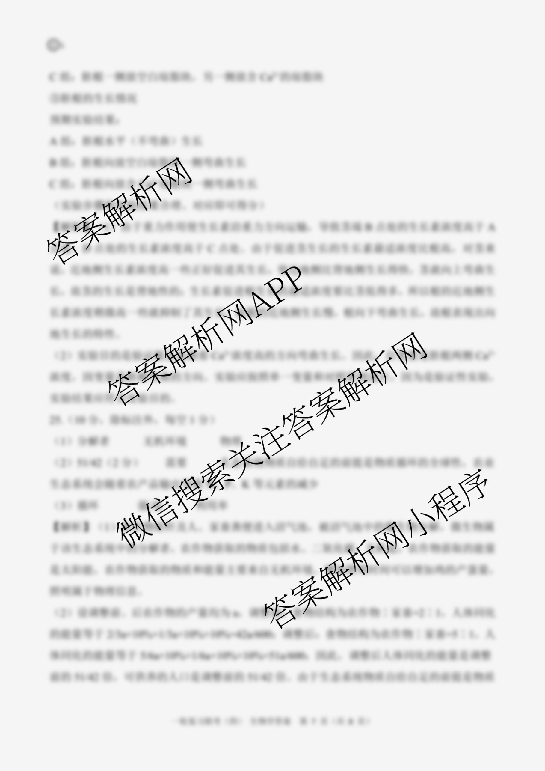 - (百师联盟)2025届[高三]一轮复习联考(四)4生物(百A)答案