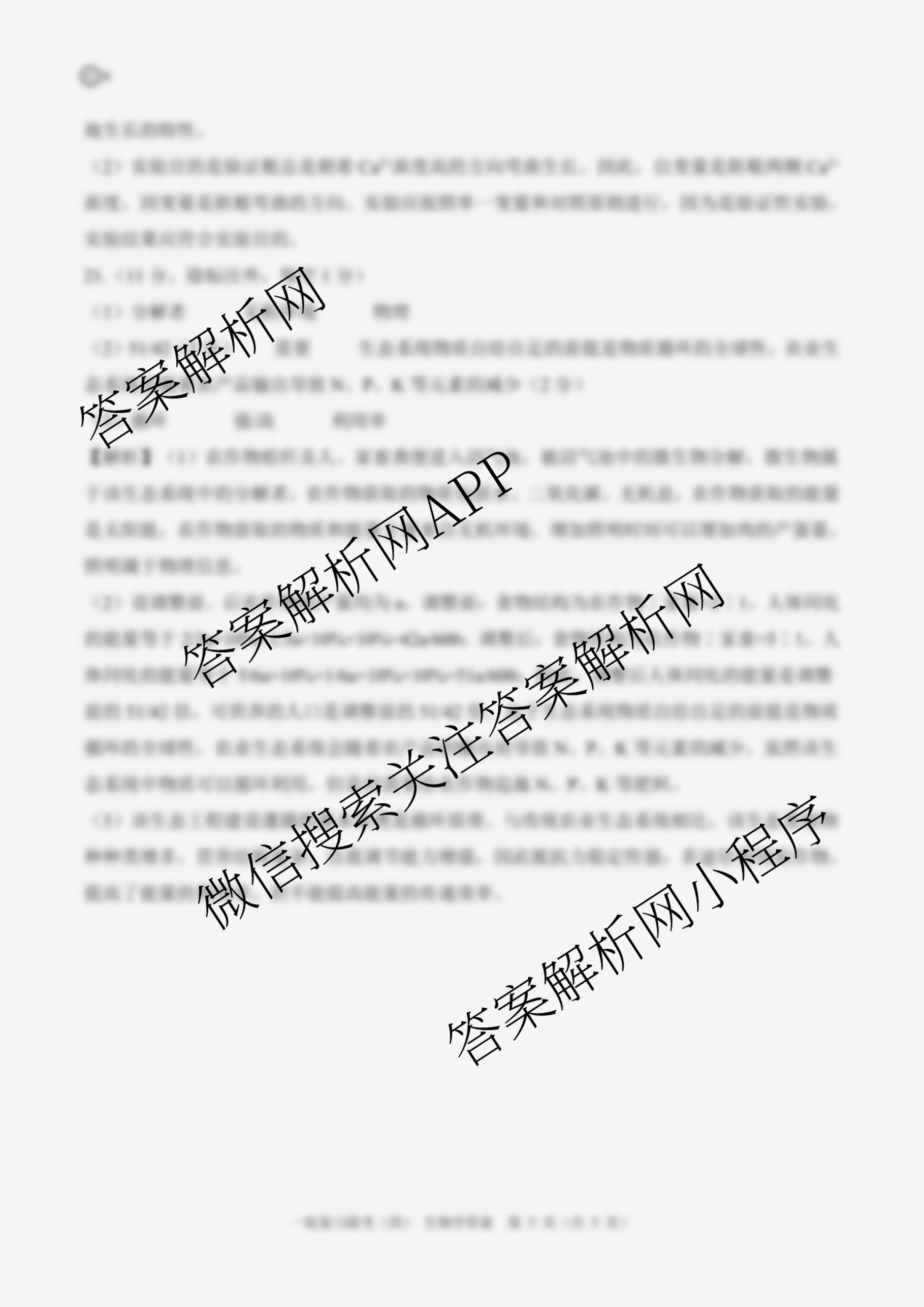 - (百师联盟)2025届[高三]一轮复习联考(四)4生物(百A)答案