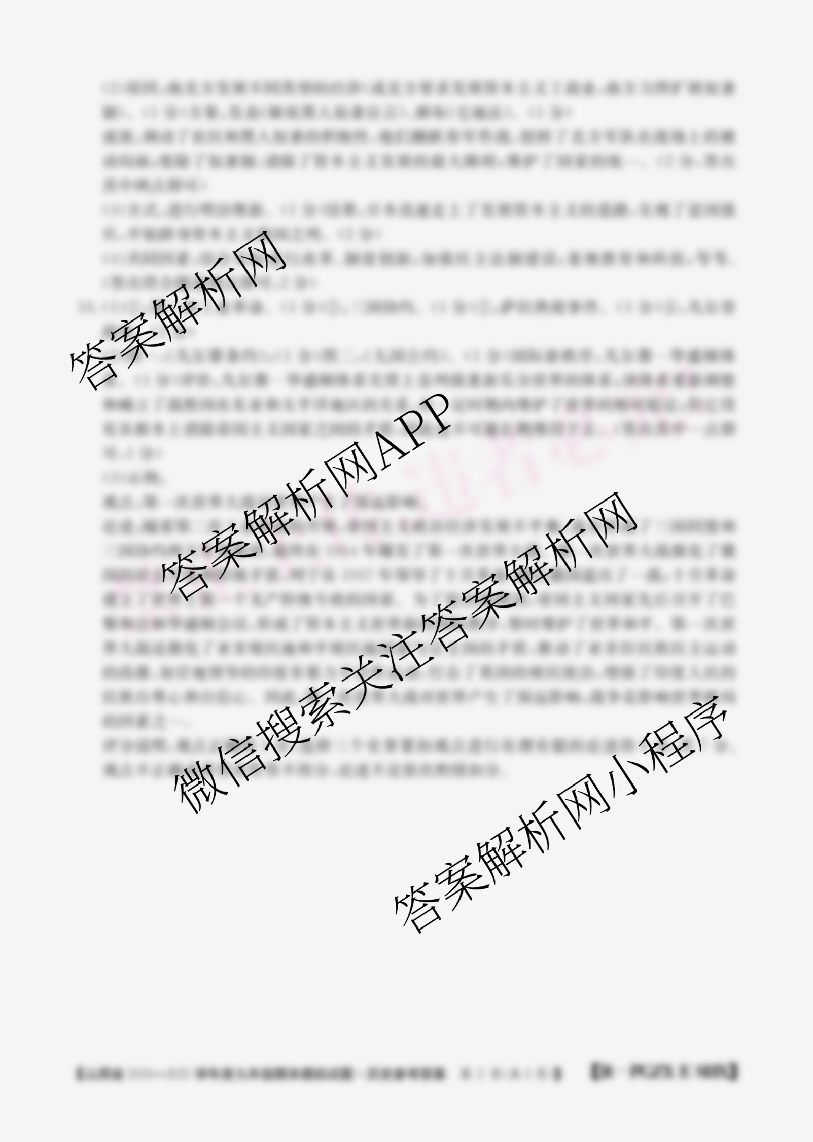 2024-2025九年级山西省学年度期末模拟试题[PGZX E SHX]历史(R)答案