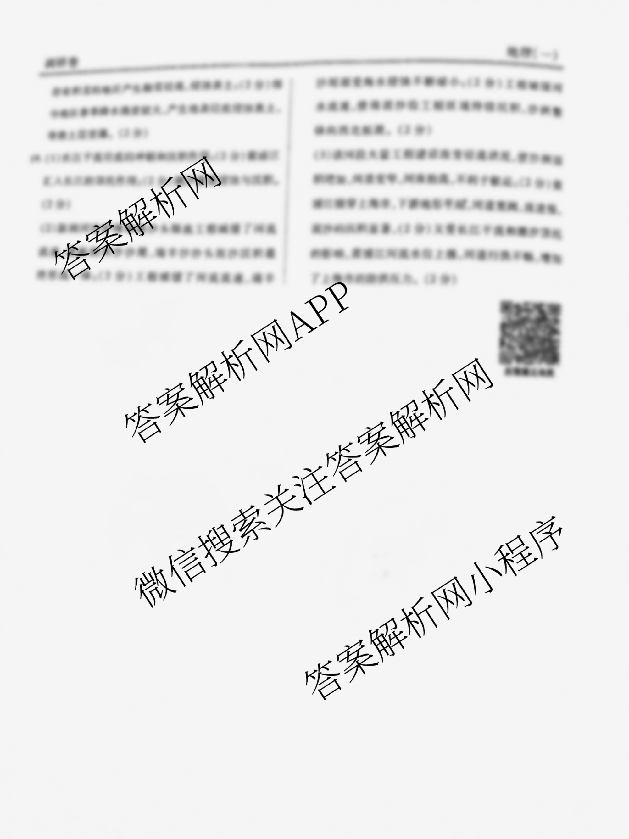 - (高三)衡水金卷先享题·调研卷 2025年普通高中学业水平选择性考试模拟试题 地理(S)(一)1答案
