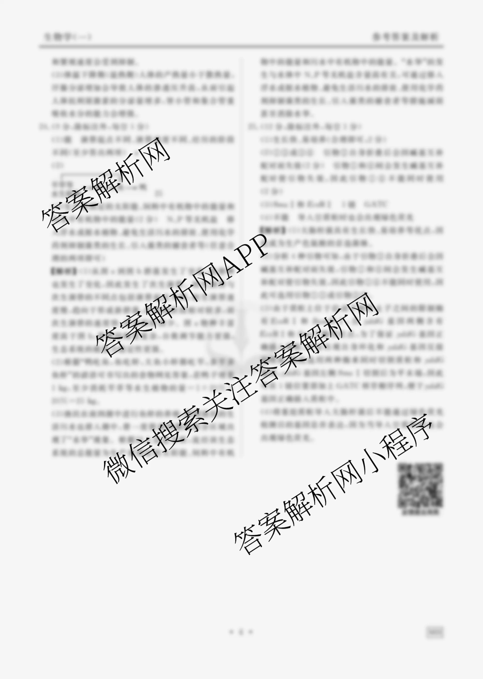 - [衡水金卷先享题]调研卷 2025年普通高中学业水平选择性考试模拟试题 生物(W)(一)1答案