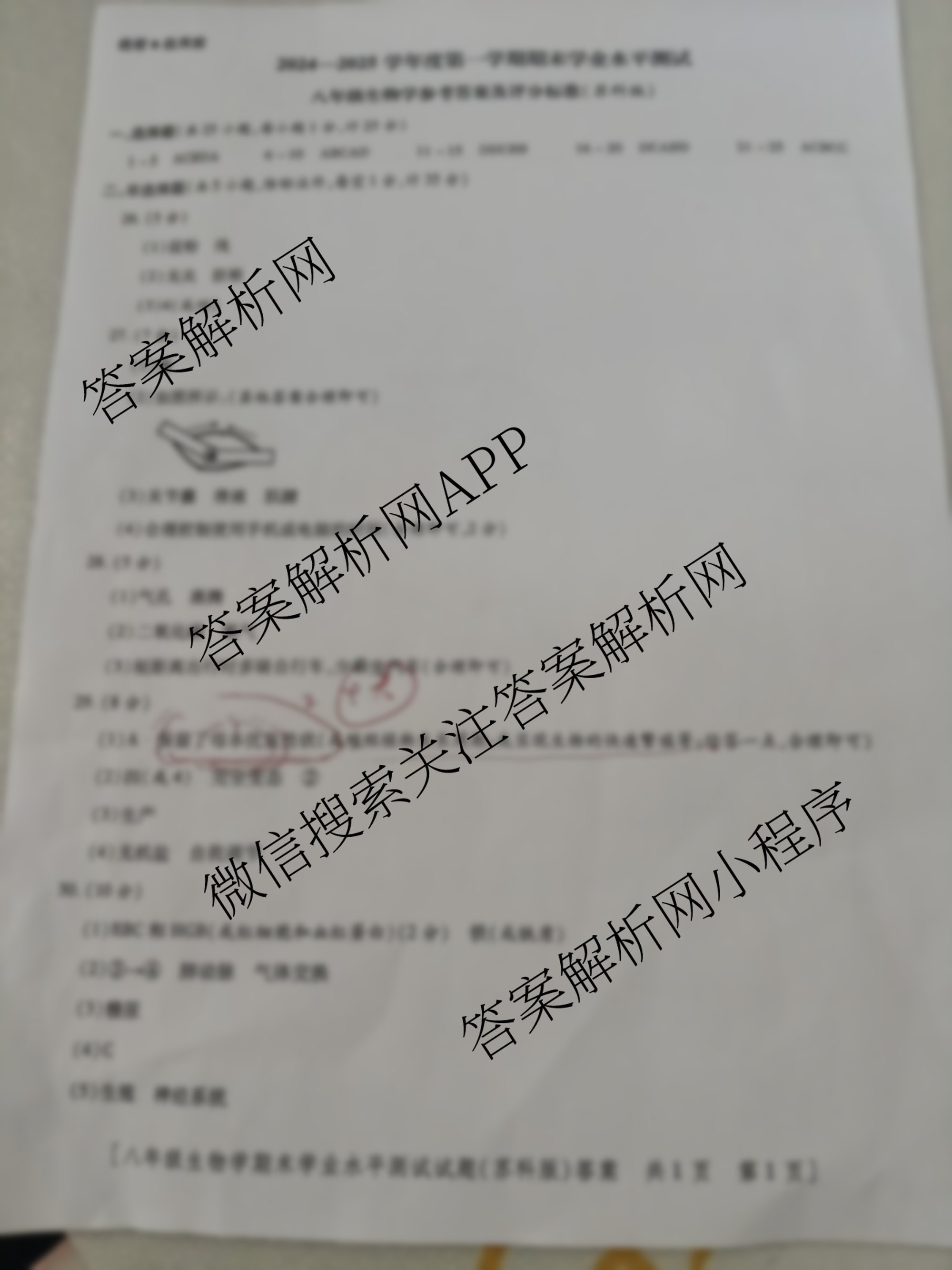 - [八年级]陕西益卷2024~2025学年度第一学期期末学业水平测试生物(苏科版)答案
