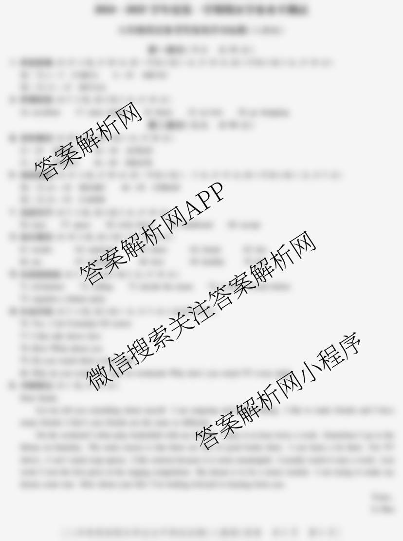 陕西益卷·2024-2025学年度第一学期期末学业水平测试八年级英语(人教版)答案,目前学英语报答案已经汇总了陕西益卷·2024-2025学年度第一学期期末学业水平测试八年级英语(人教版)答案的各科答案和试卷,获取更多益卷答案解析,请在关注本站。
