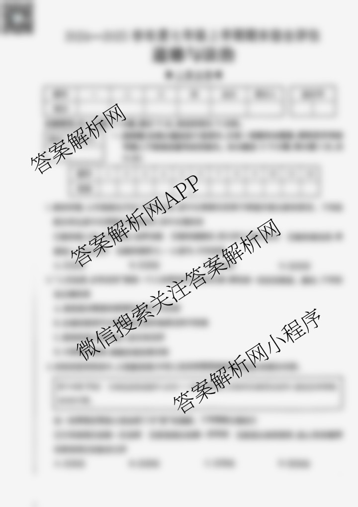 - [七年级]2024~2025学年度上学期期末综合评估[4L-SHX]道德与法治(R)答案
