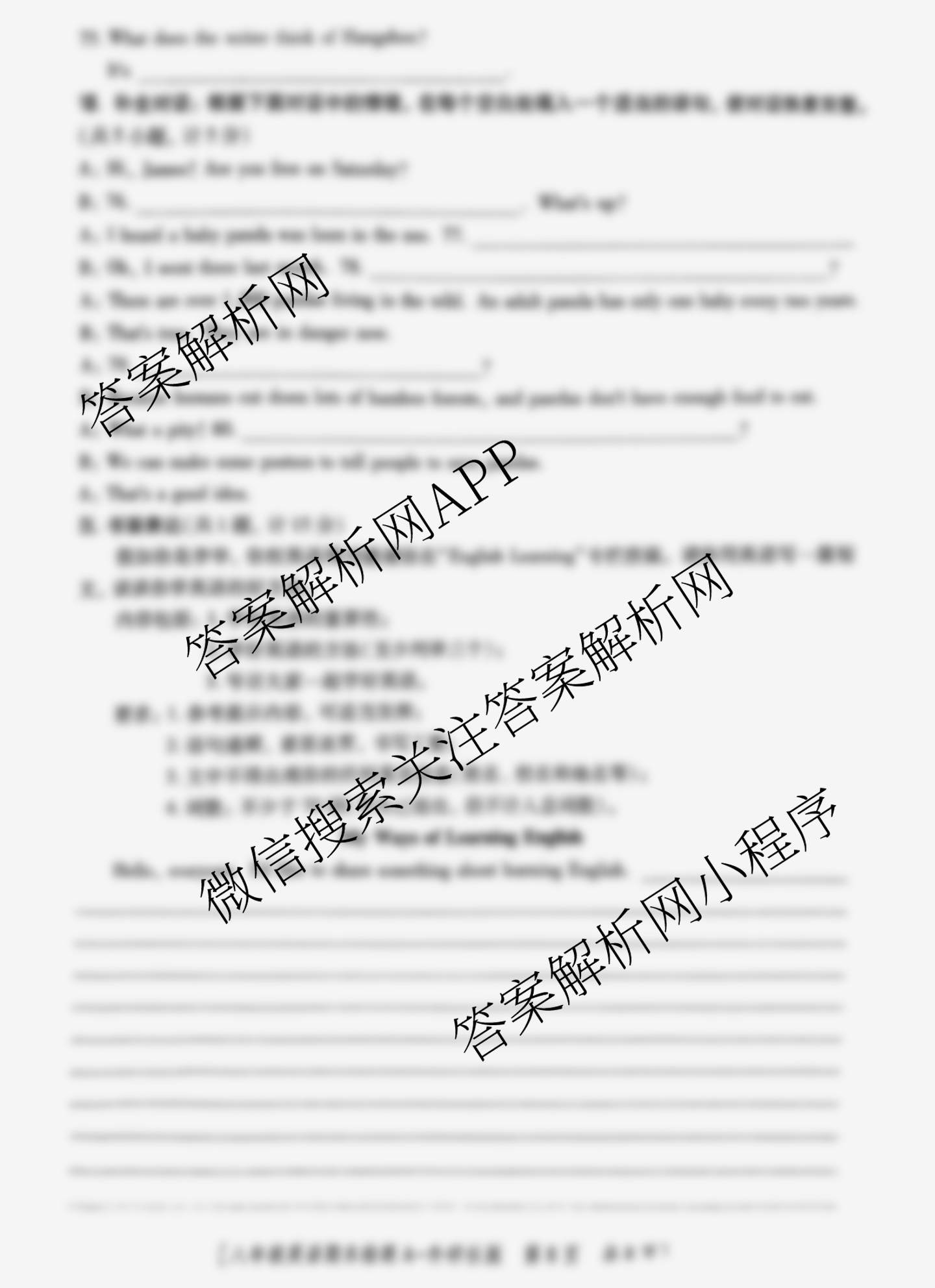 陕西益卷·2024~2025学年度第一学期期末检测八年级(A)英语(外研社版)试题,目前学英语报答案已经汇总了陕西益卷·2024~2025学年度第一学期期末检测八年级(A)英语(外研社版)试题的各科答案和试卷,获取更多益卷答案解析,请在关注本站。