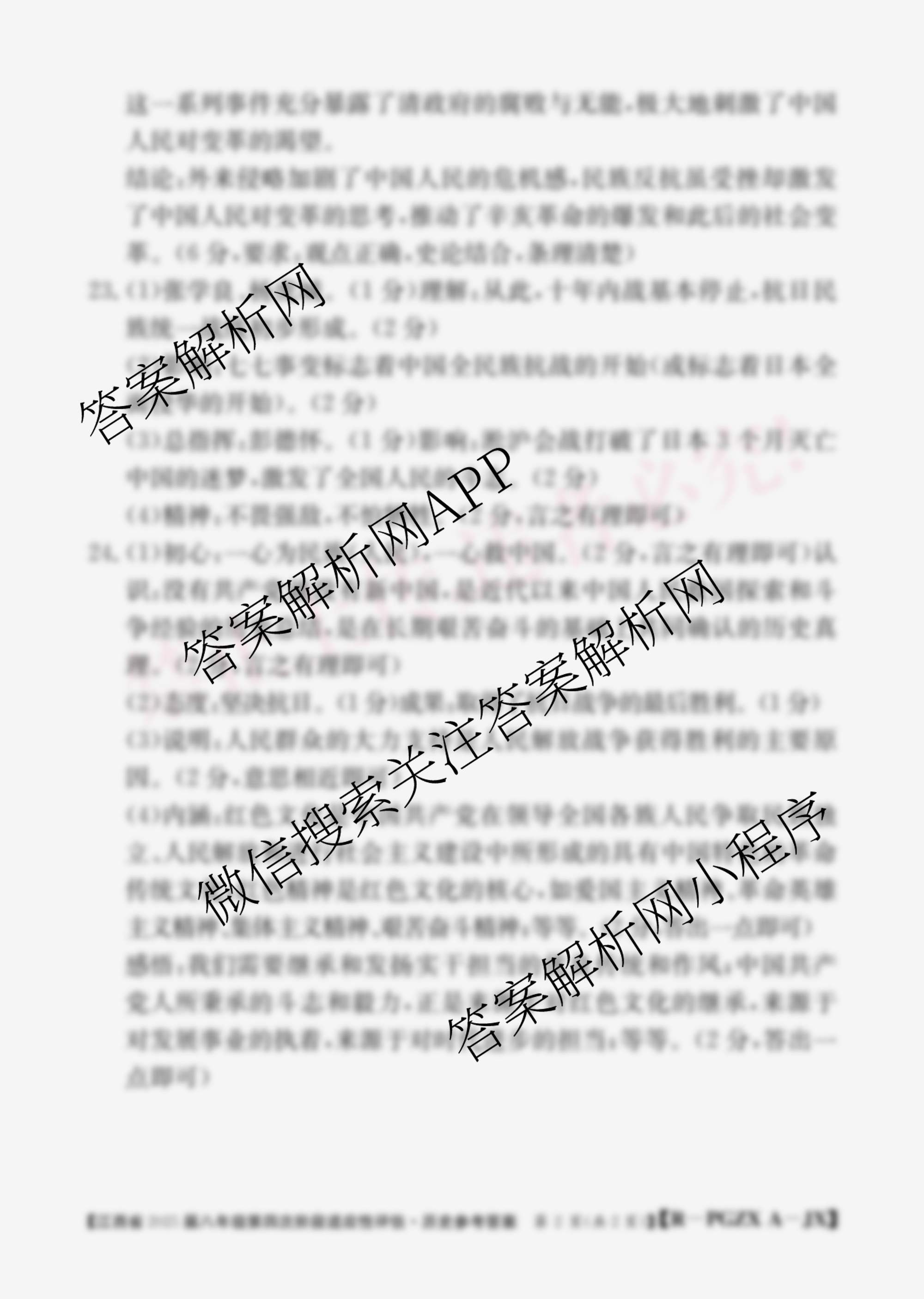 - 2025届江西省八年级第四次阶段适应性评估[PGZX A-JX]历史(R)答案