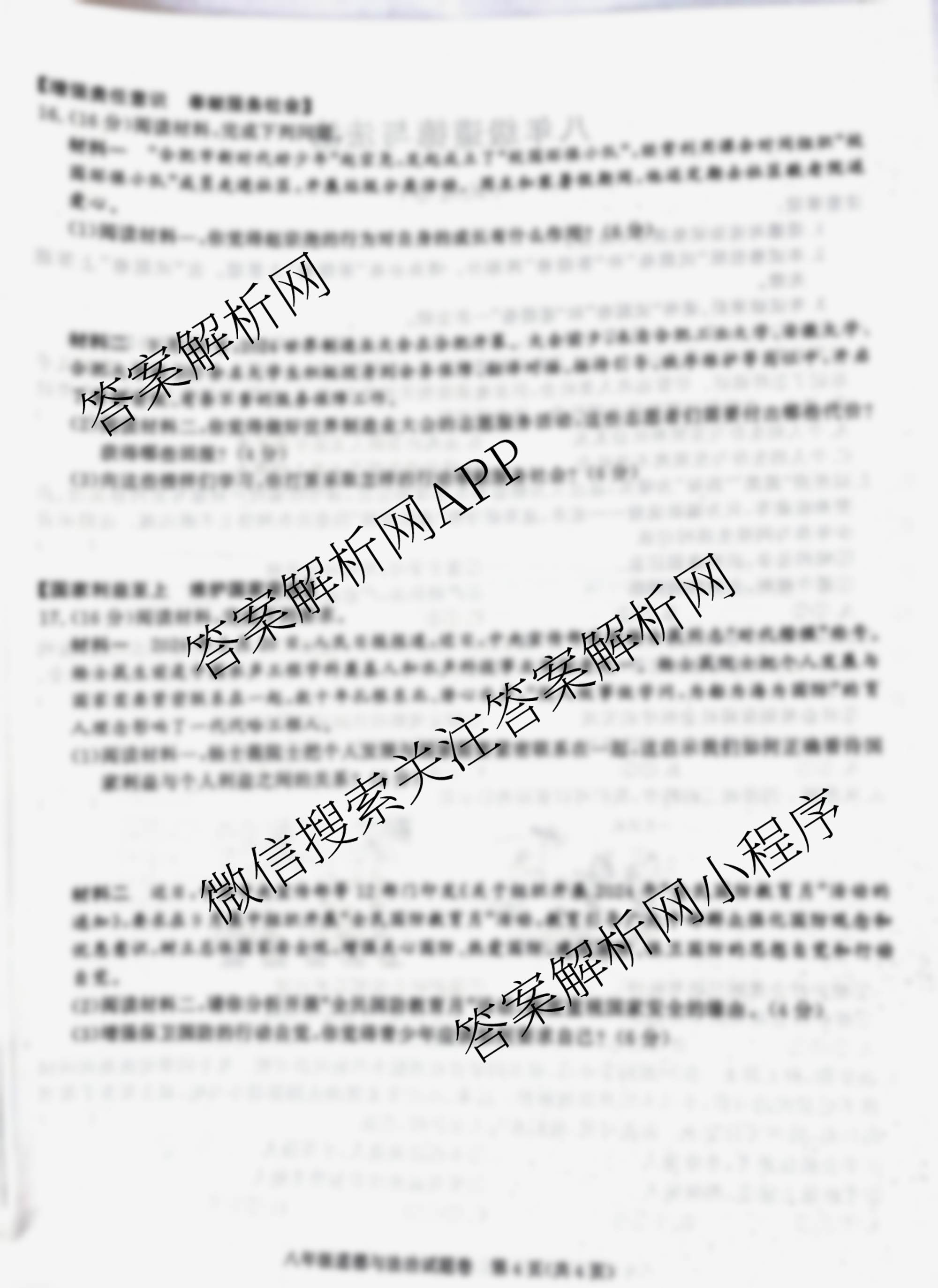 安徽省2024-2025学年八年级上学期期末教学质量调研(无标题)道德与法治试题,目前学英语报答案已经汇总了安徽省2024-2025学年八年级上学期期末教学质量调研(无标题)道德与法治试题的各科答案和试卷,获取更多安徽省教学质量调研答案解析,请在关注本站。