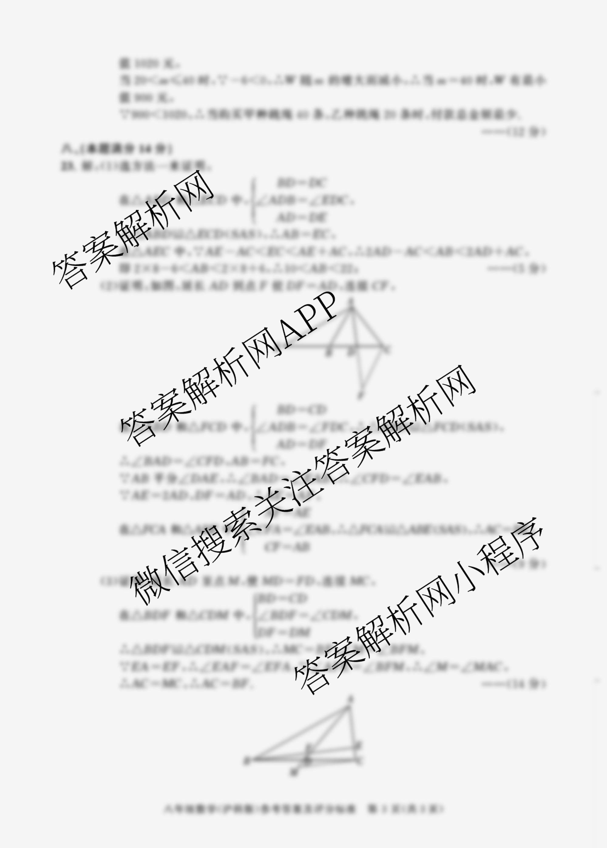 - [八年级]安徽省2024~2025学年上学期期末教学质量调研(无标题)数学(人教版)答案