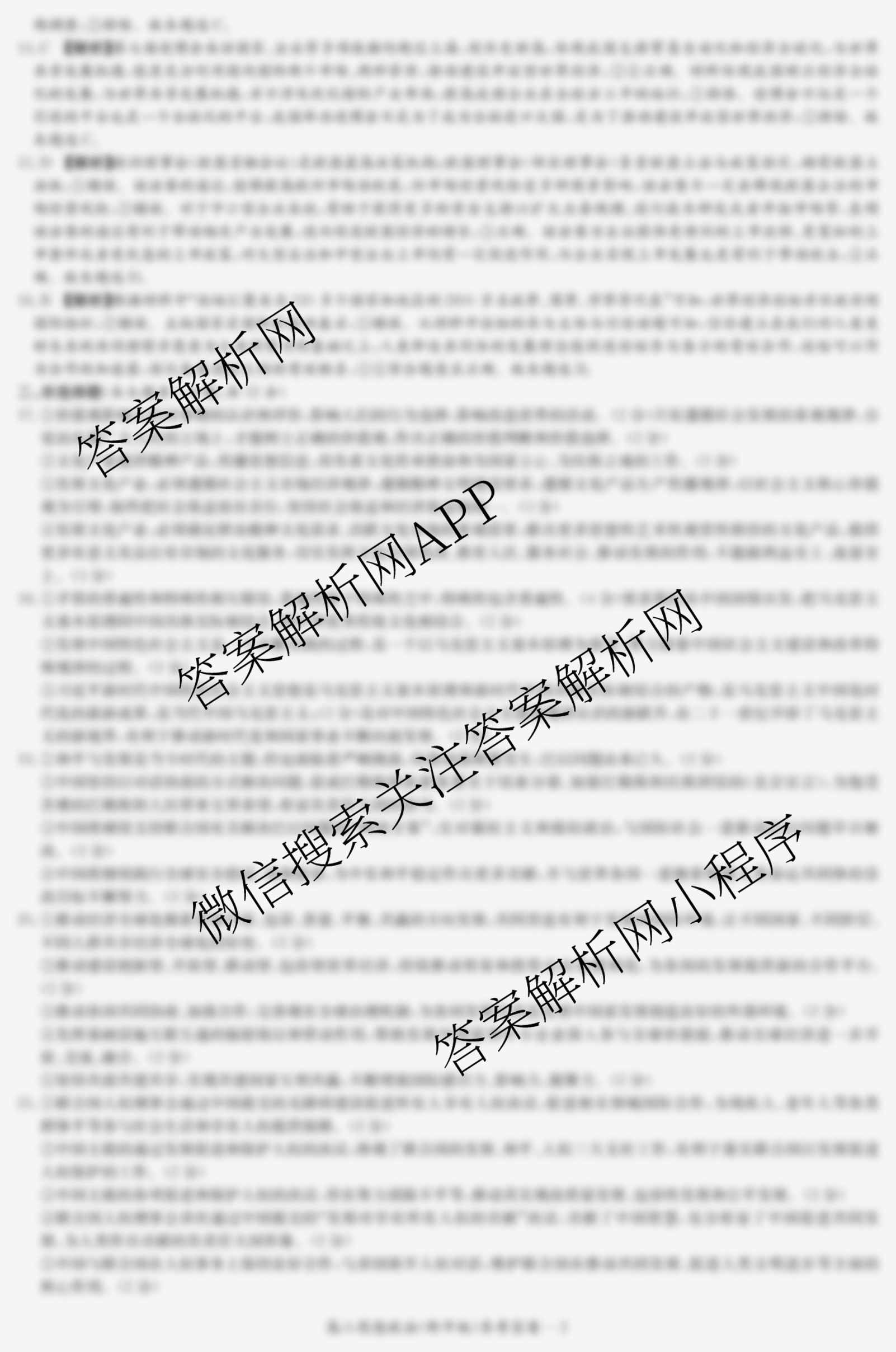 - 2024-2025湖南师大附中学年度(高二)第一学期期末考试政治答案