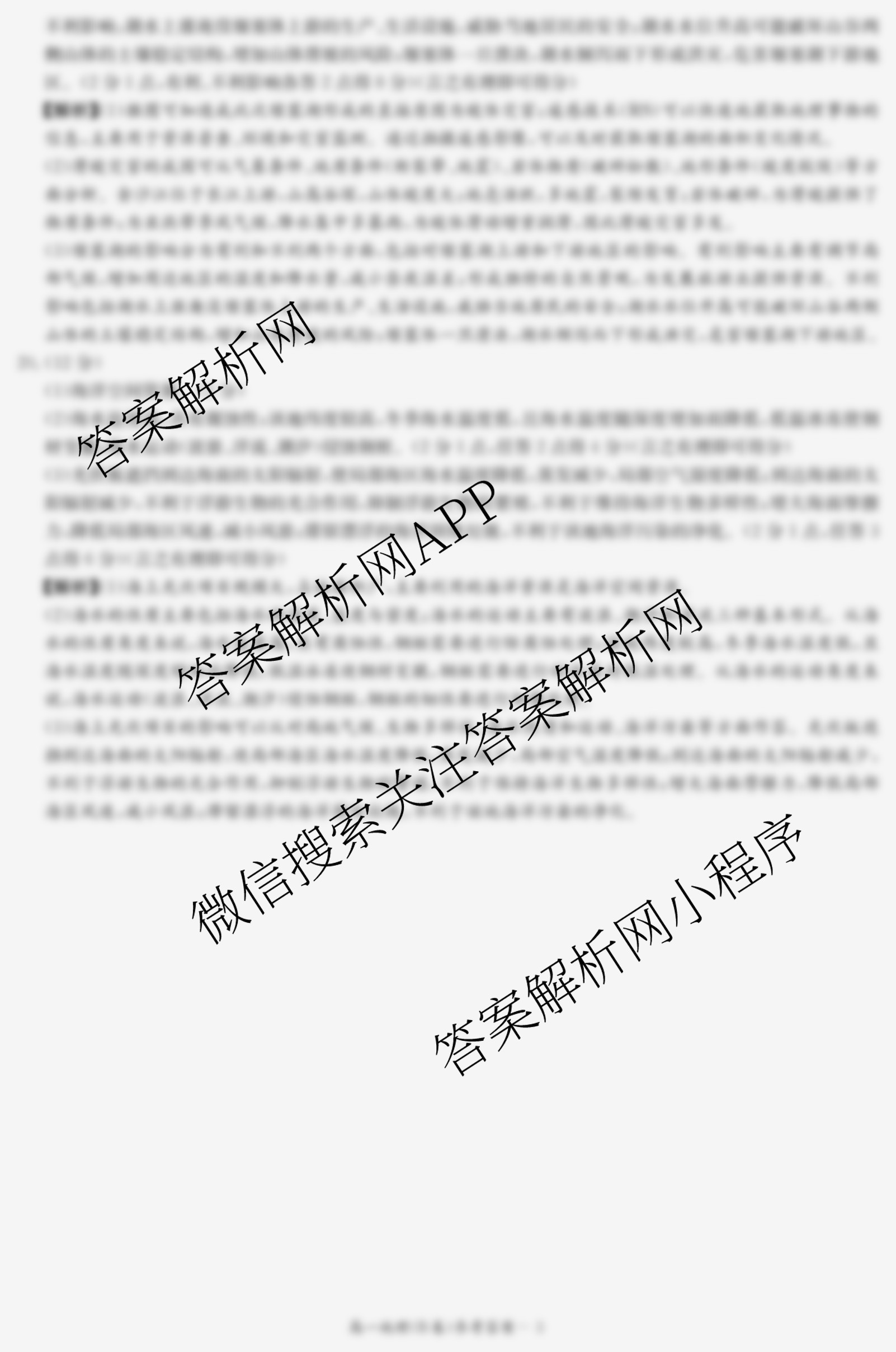 - 高一[炎德英才大联考]·2024年第一学期期末质量检测考试地理(A)答案