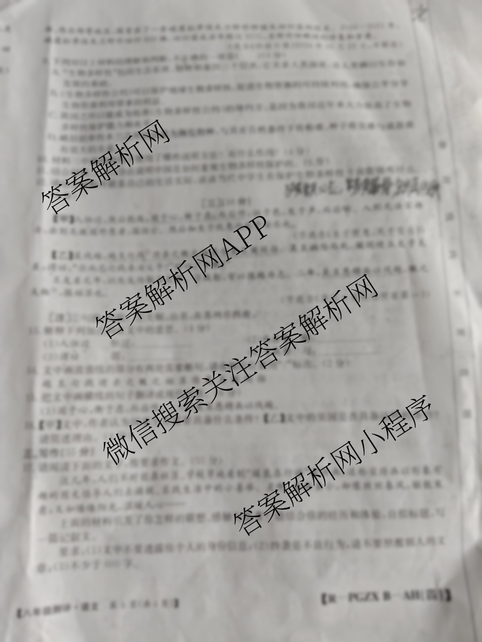 安徽省2024-2025八年级测评(无标题)[PGZX B-AH(四)]语文(R)试题,目前学英语报答案已经汇总了安徽省2024-2025八年级测评(无标题)[PGZX B-AH(四)]语文(R)试题的各科答案和试卷,获取更多初中阶段诊断答案解析,请在关注本站。