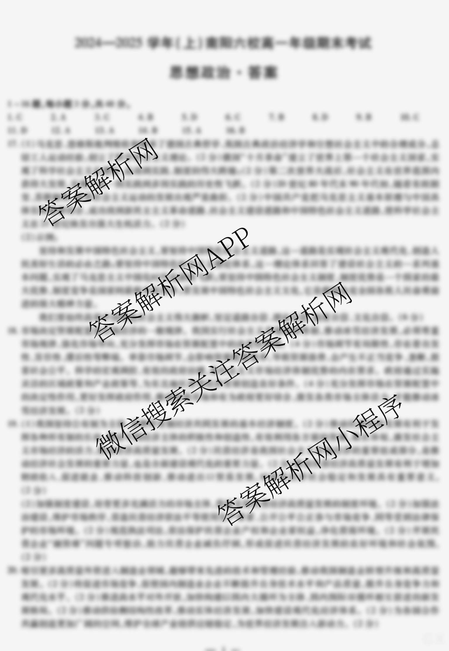 - (天一大联考)·2024~2025学年(上)南阳六校[高一]年级期末考试政治答案