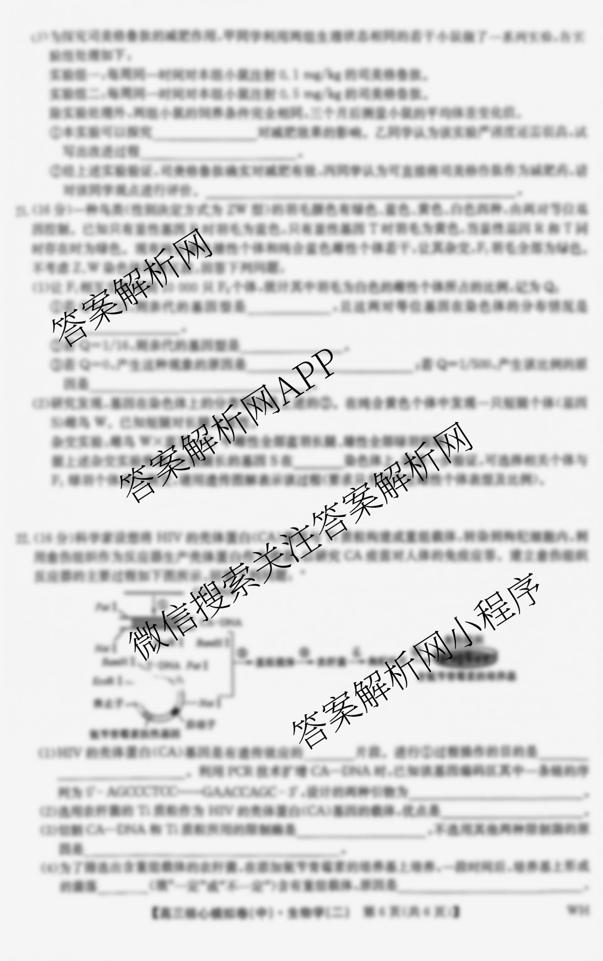 - (九师联盟)2024~2025学年(高三)核心模拟卷(中)(二)2生物(WH)答案