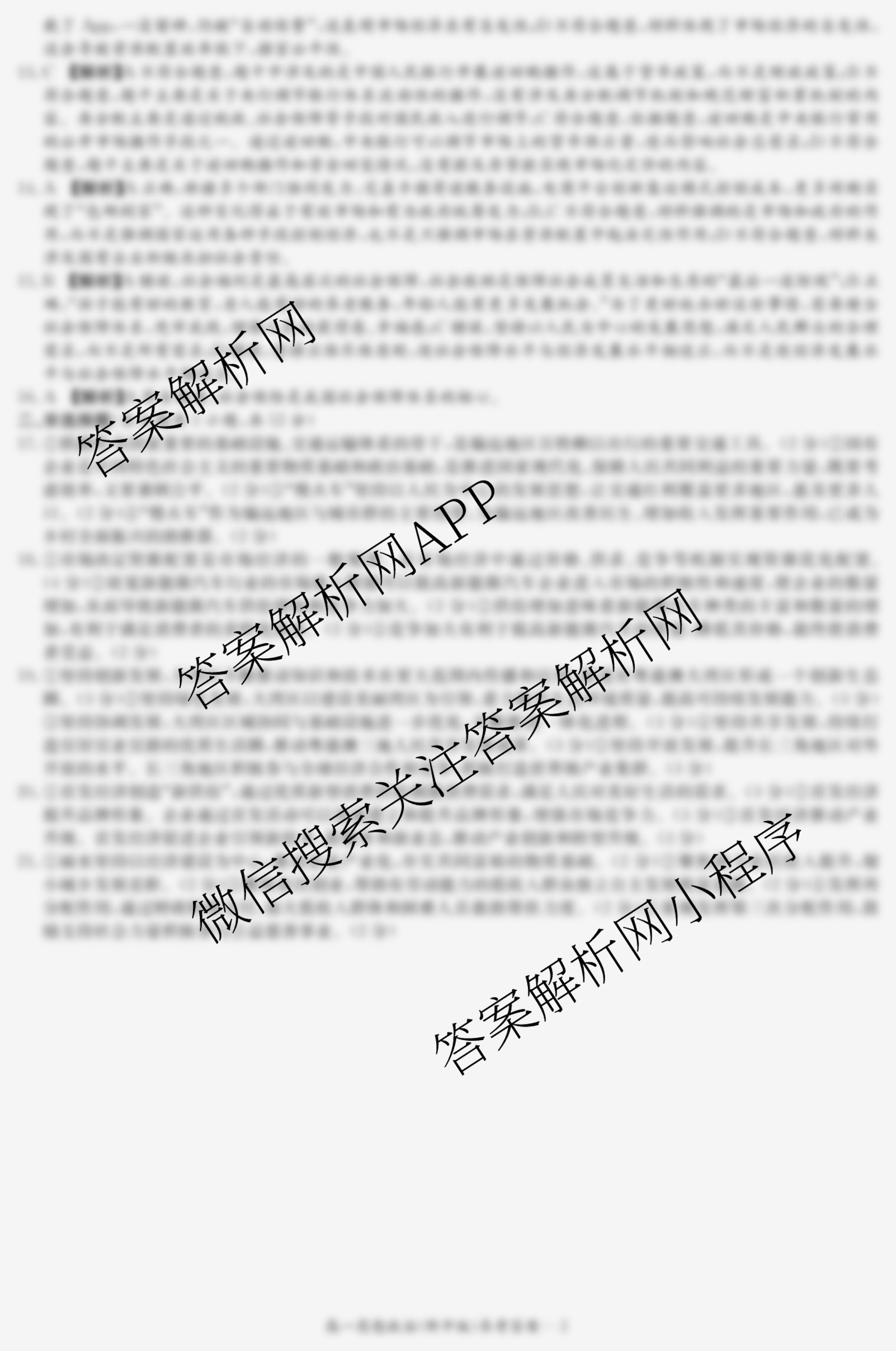 - 2024~2025高一湖南师大附中学年度第一学期期末考试政治答案
