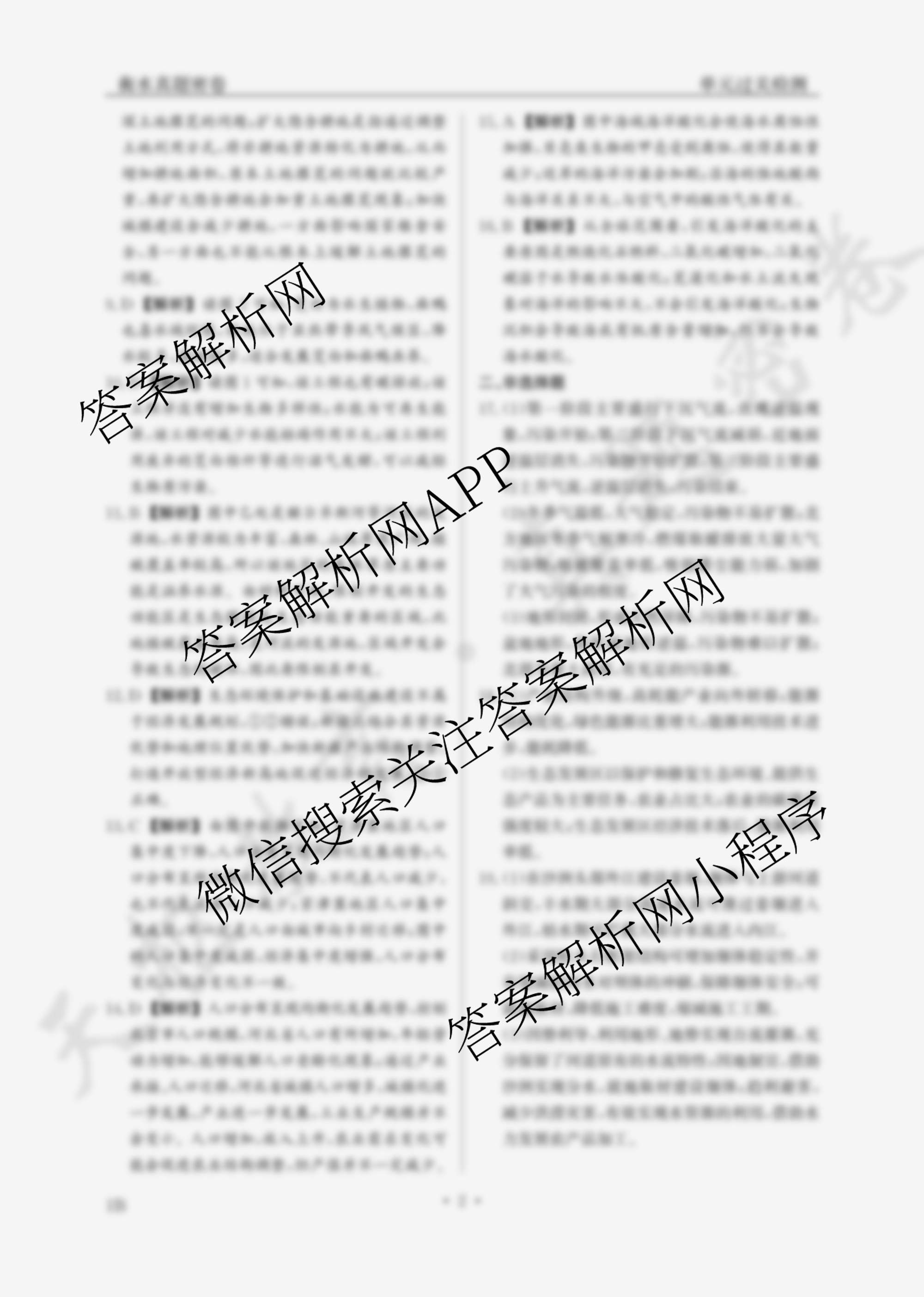 衡水真题密卷2024-2025学年度单元过关检测 地理(1B)(十一)11答案