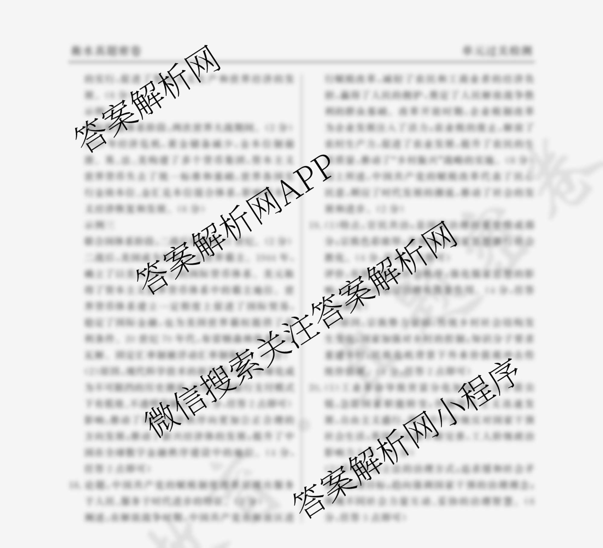 衡水真题密卷2024-2025学年度单元过关检测 历史(1B)(十五)15答案