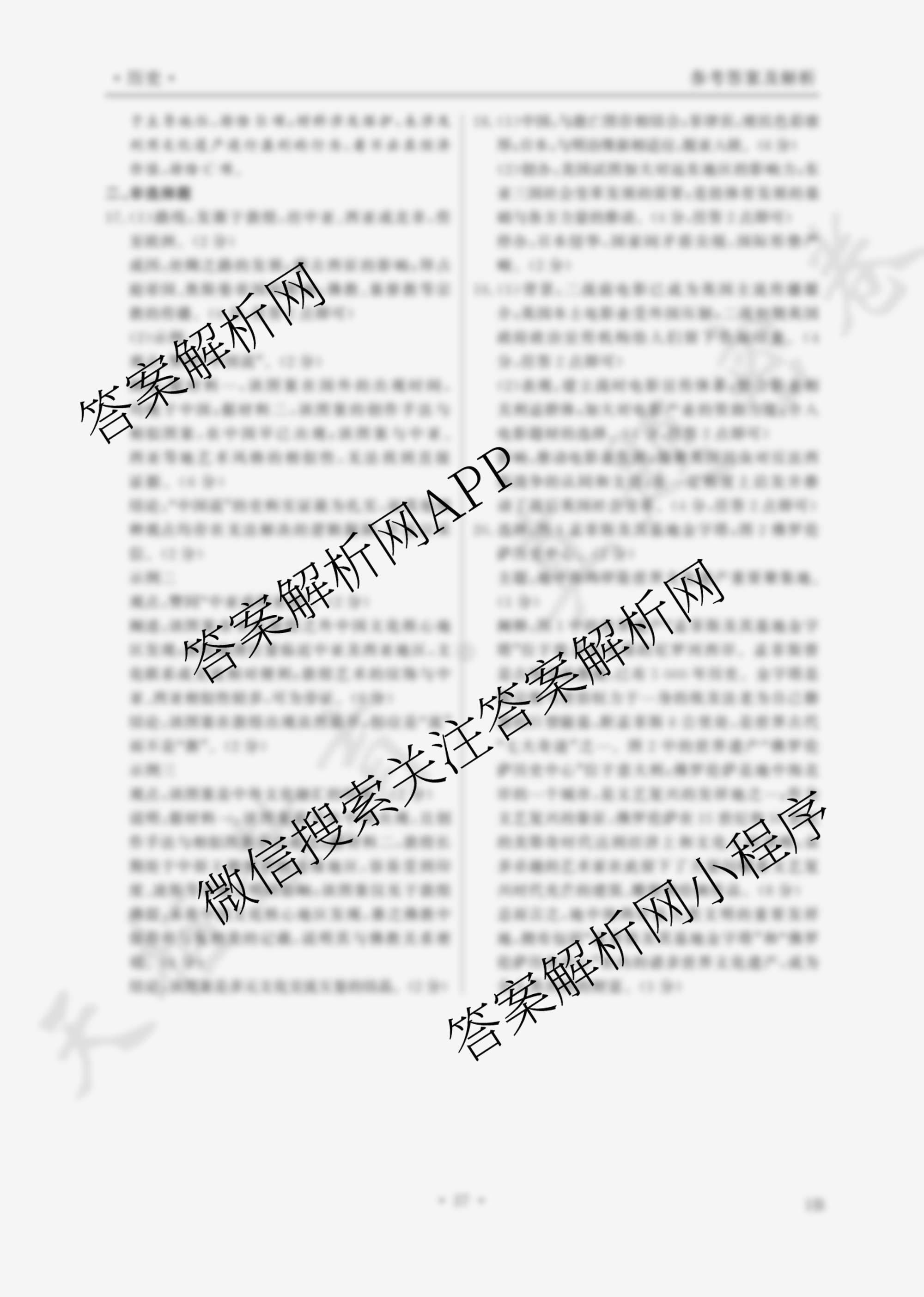 衡水真题密卷2024-2025学年度单元过关检测 历史(1B)(二十)20答案