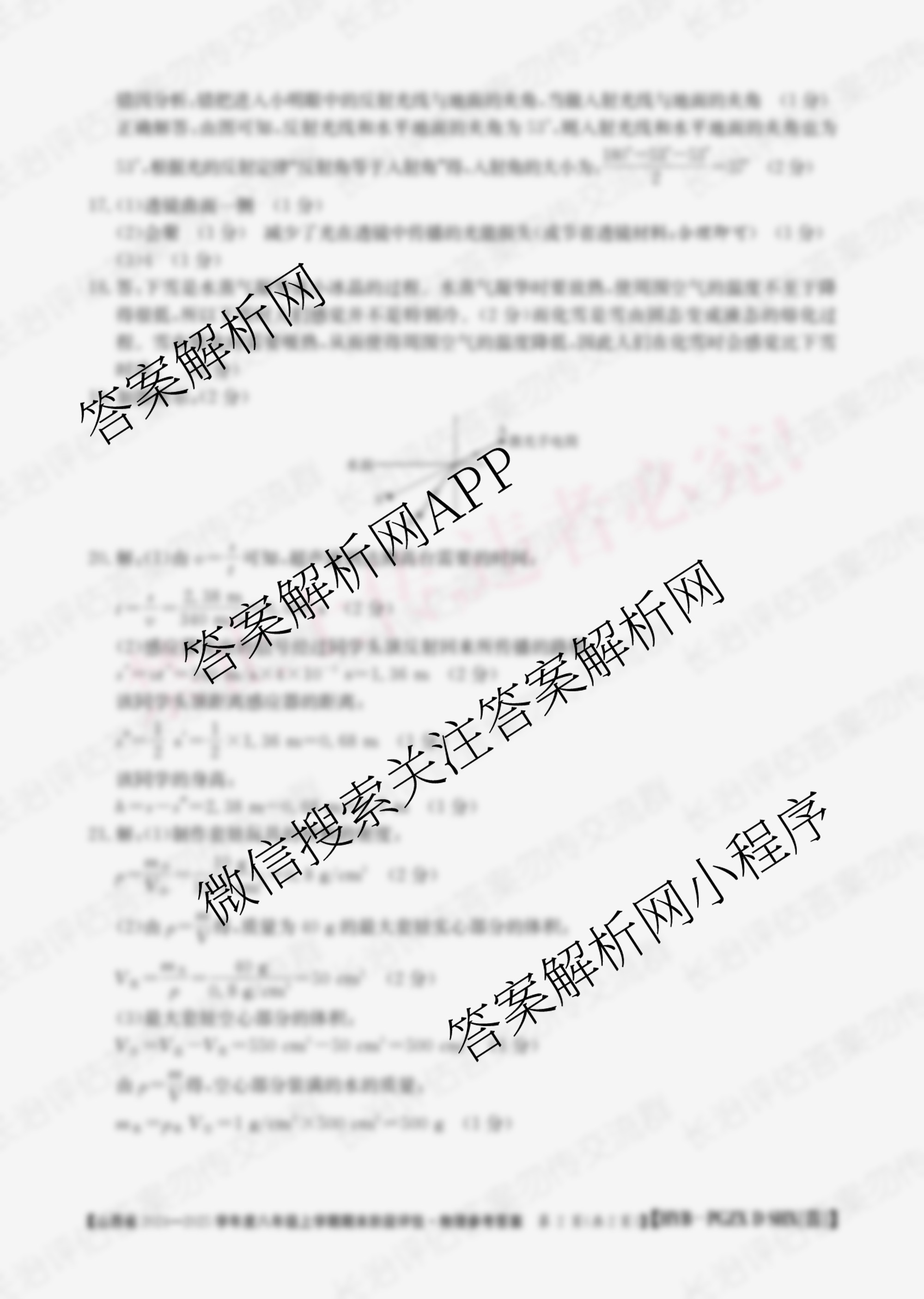 - [八年级]山西省2024-2025学年度上学期期末阶段评估[PGZX D SHX(四)]物理(R)答案