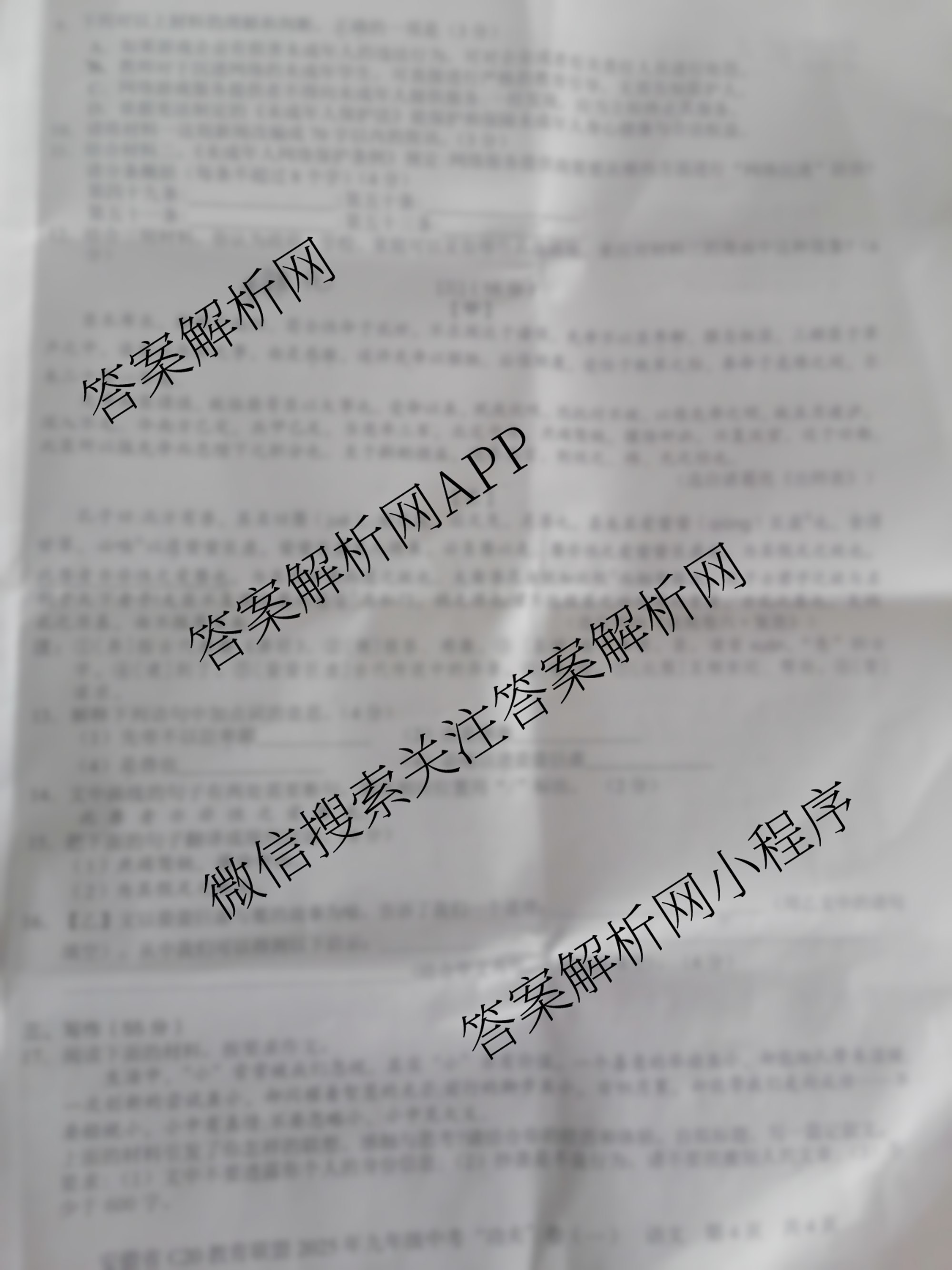 - [九年级]安徽省[C20教育联盟]2025年中考功夫卷(一)道德与法治答案