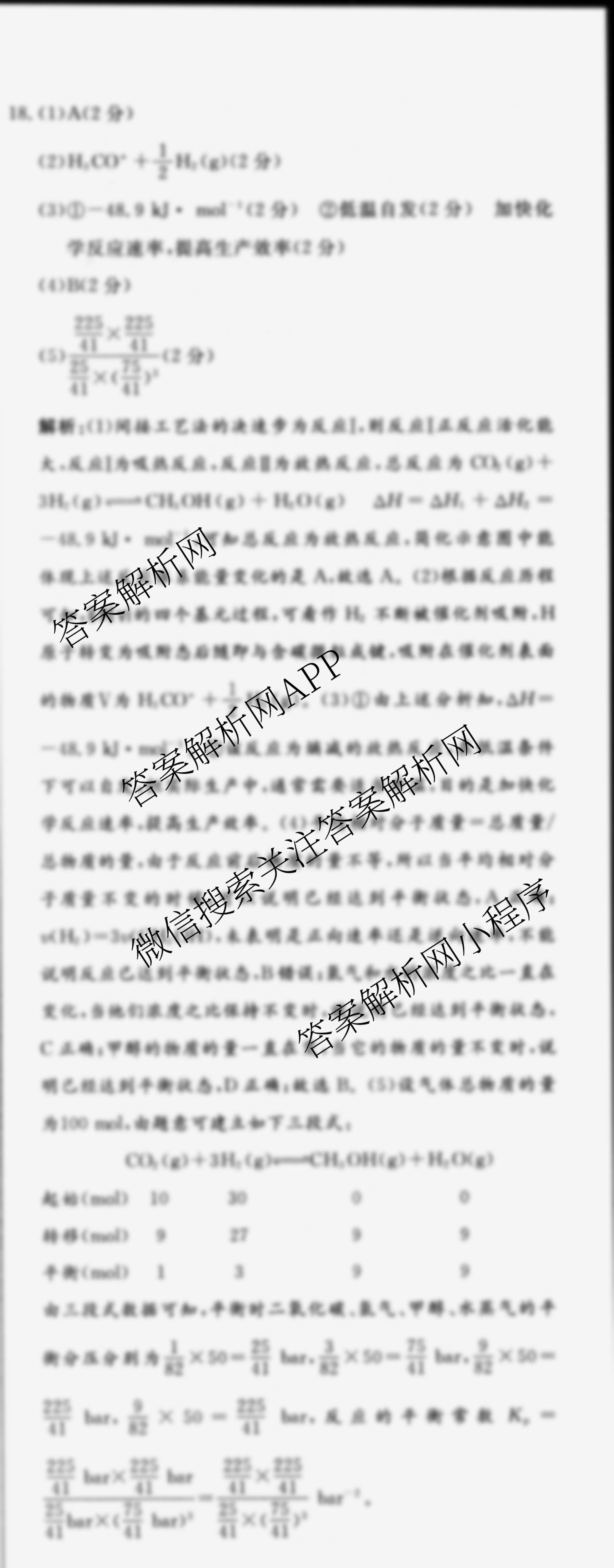 - (黄冈八模)2025届[高三]化学模拟测试卷(三)3化学(重庆)答案