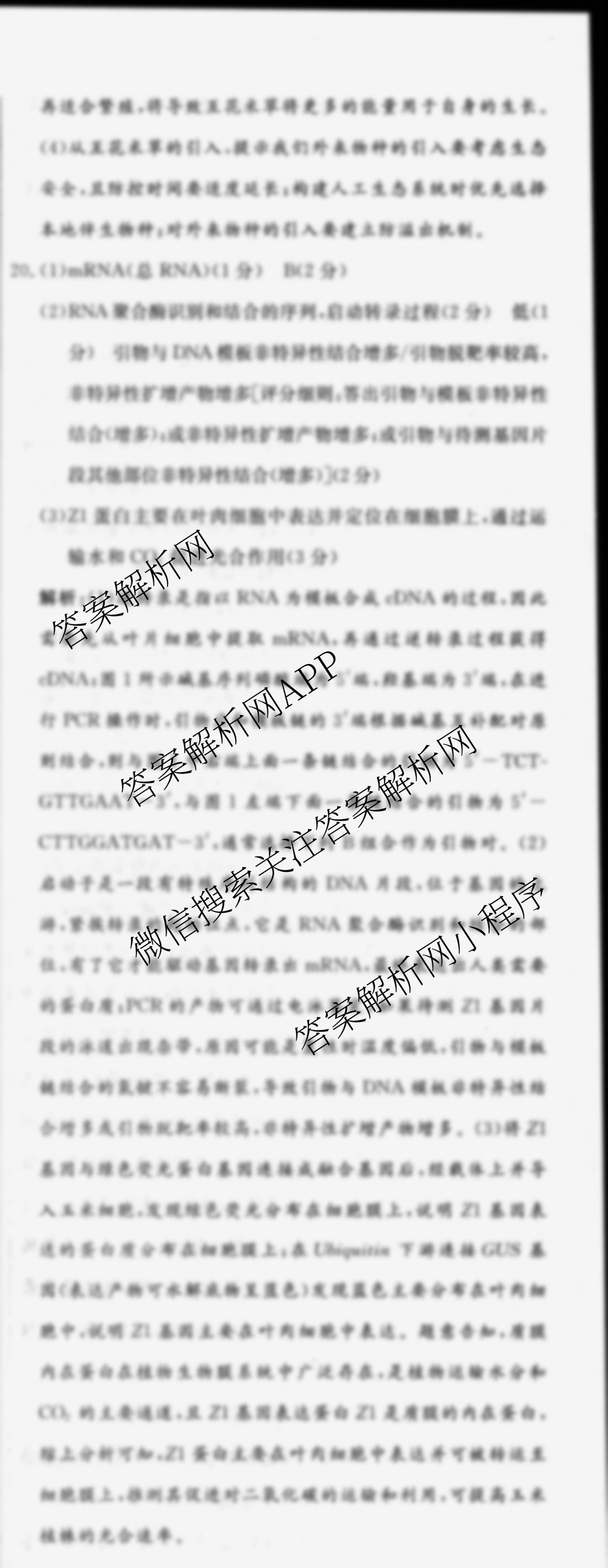 - [高三]黄冈八模2025届生物模拟测试卷(三)3生物(湖北)答案