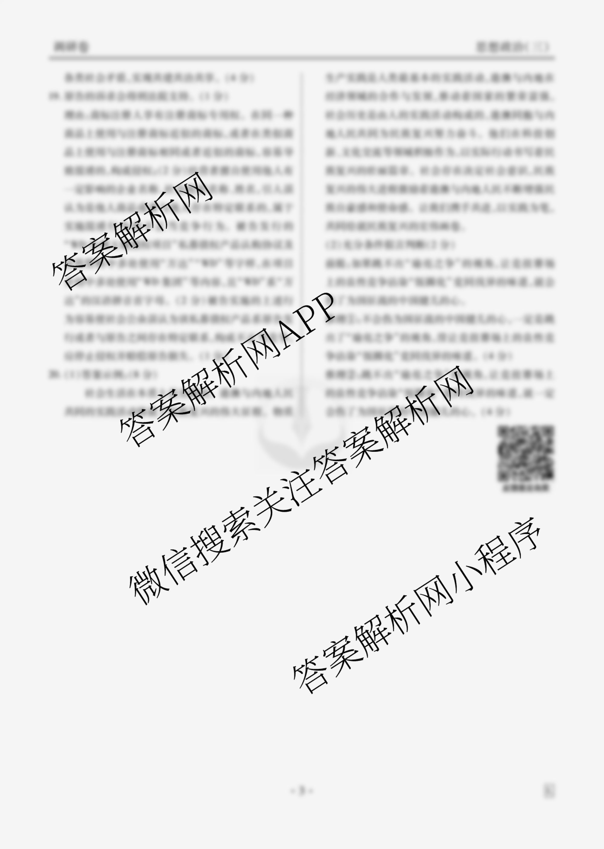 - (衡水金卷先享题)·调研卷 2025年普通高中学业水平选择性考试模拟试题 政治(S)(三)3答案