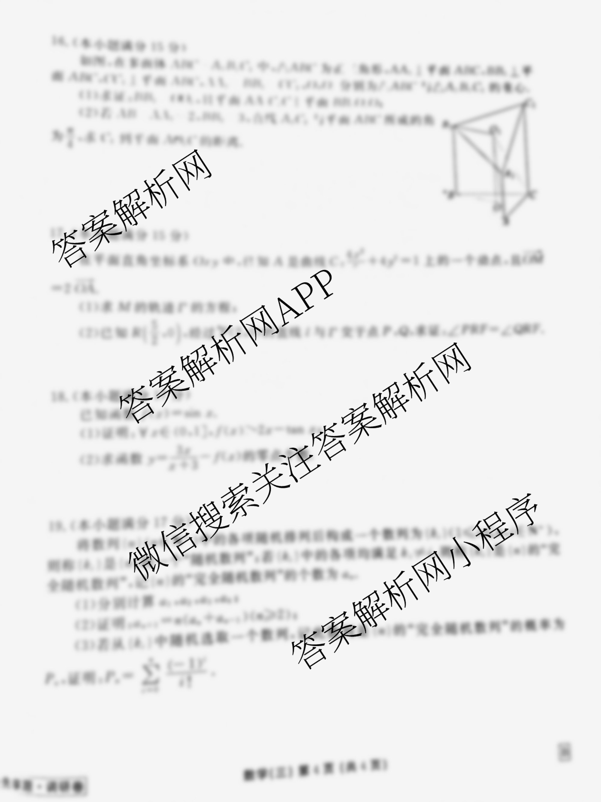 - (高三)(衡水金卷先享题)·调研卷 2025年普通高等学校招生全国统一考试模拟 数学(A)(三)3答案