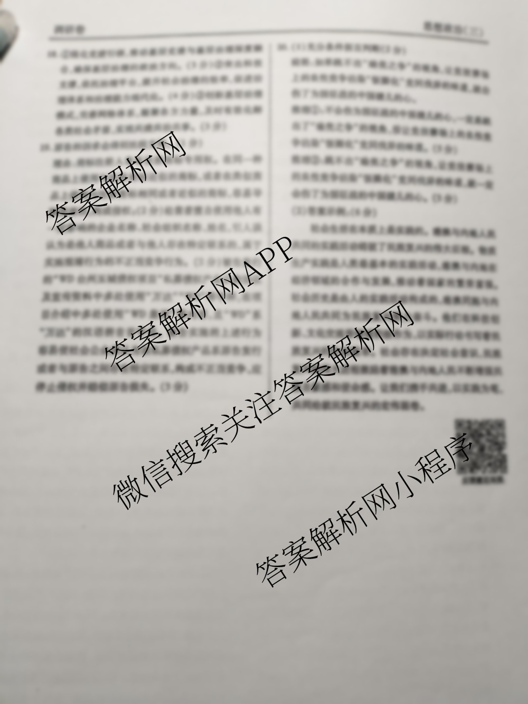 - [衡水金卷先享题]调研卷 2025年普通高中学业水平选择性考试模拟 政治(FJ)(三)3答案
